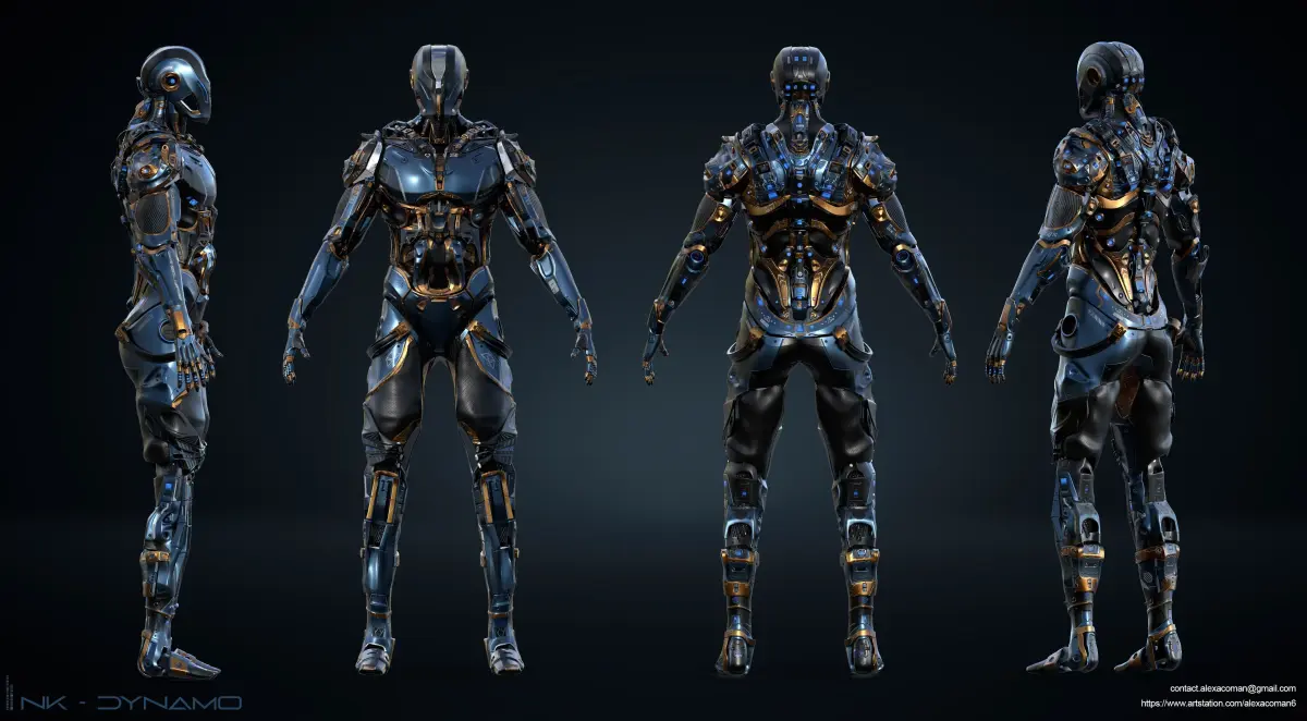 3D character model in mech/cyberpunk style. It was modeled in Maya and is ready to use. All body pieces are separated and can be used for kitbashing and faster 3d concept or the low poly as a prop in a game. It includes: