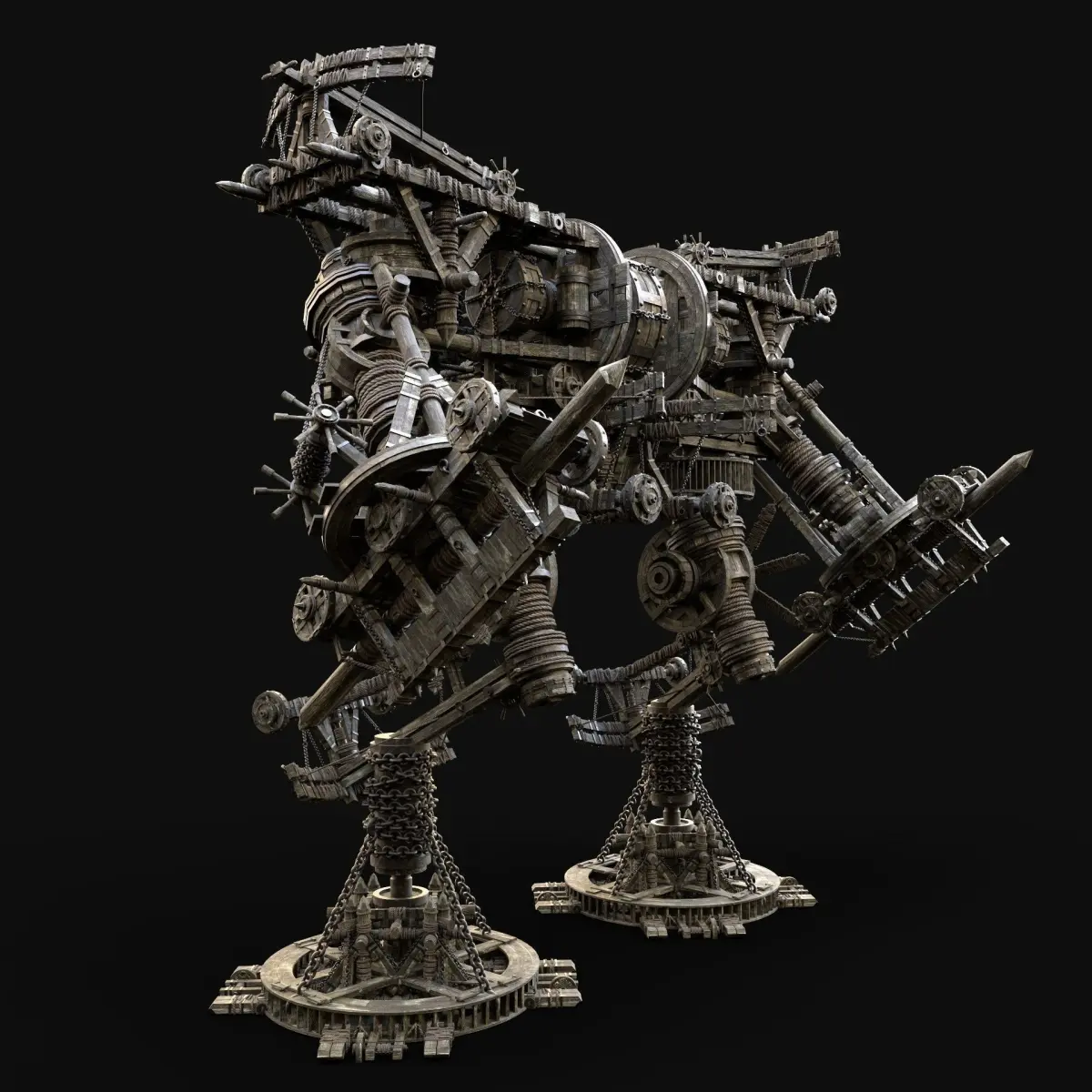 - Next gen, AAA quality, game-ready model of wooden mech.