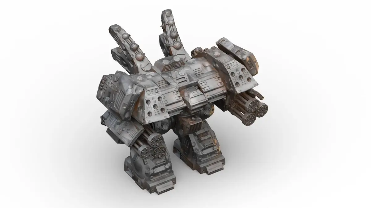 This download contains .STL & .OBJ files for the following models:MainBodyLeftShoulderRightShoulderPelvisLeftPauldronRightPauldronLeft LegRight LegTurret