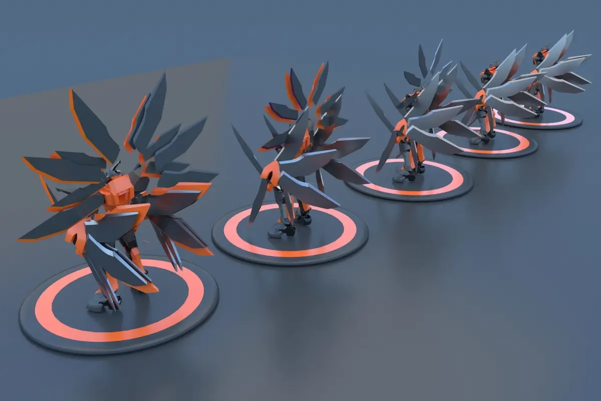 This is stage FIVE of FIVE. robot mech cyborg made in 3ds max. can be used for multipurpose stuff,such as animations, games, making wallpapers, or cool stuff stock images then selling those imgaes, etc. very good detailedm odel with materials easily changable which means colors are easy to change also and you can design it as you wish.