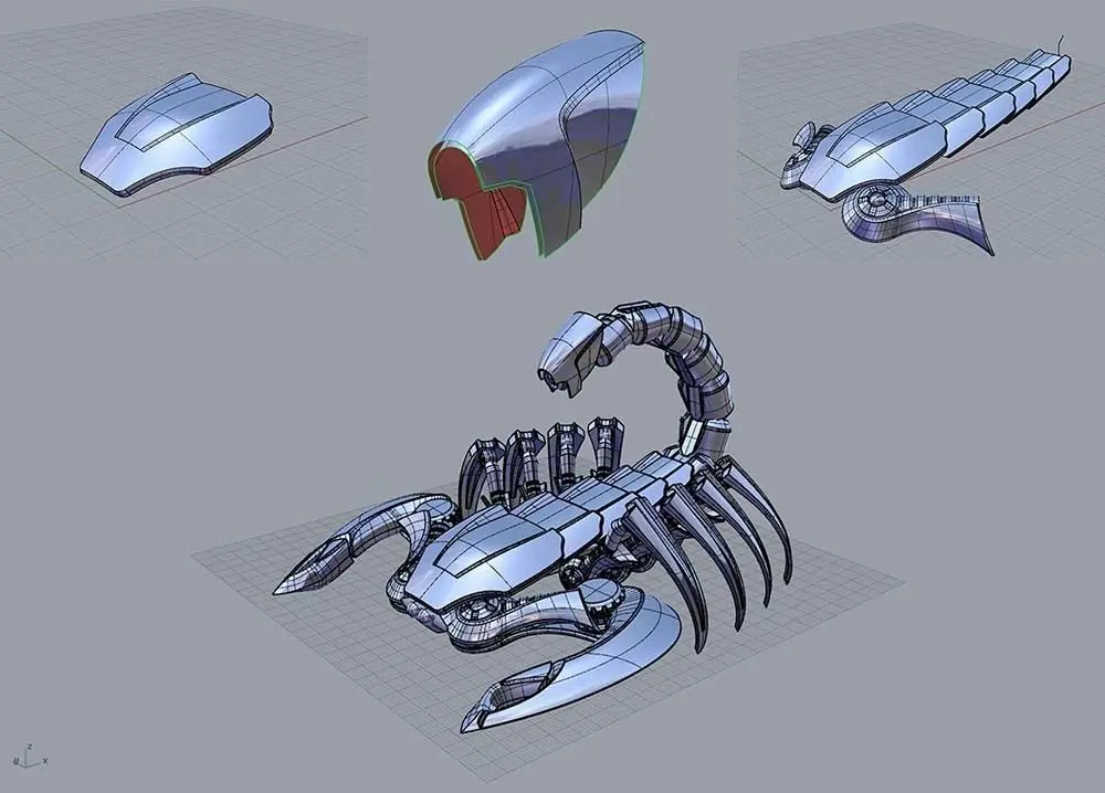 With this Mech Scorpion I was playing with few main details and then, apply them to the rest of the body to achieve some sort of consistency. There are not articulations or mechanical system solved at all, just floating geometry. Suitable for rendering, rigid body animations and suchThe Step and OBJ files contains each part separately.