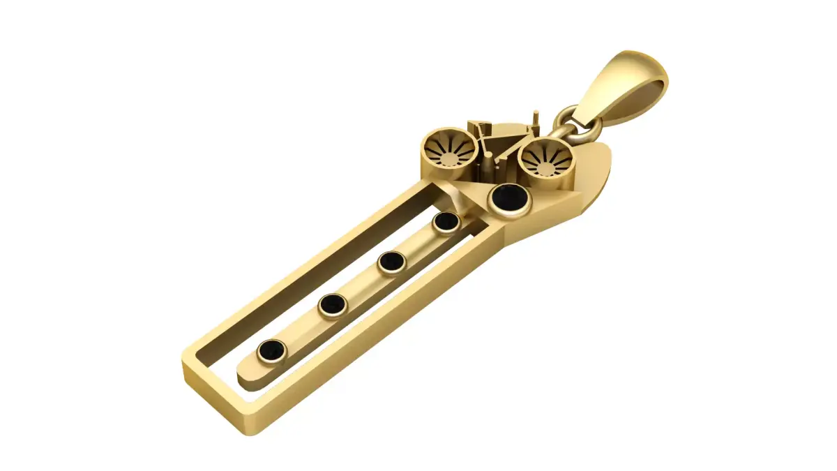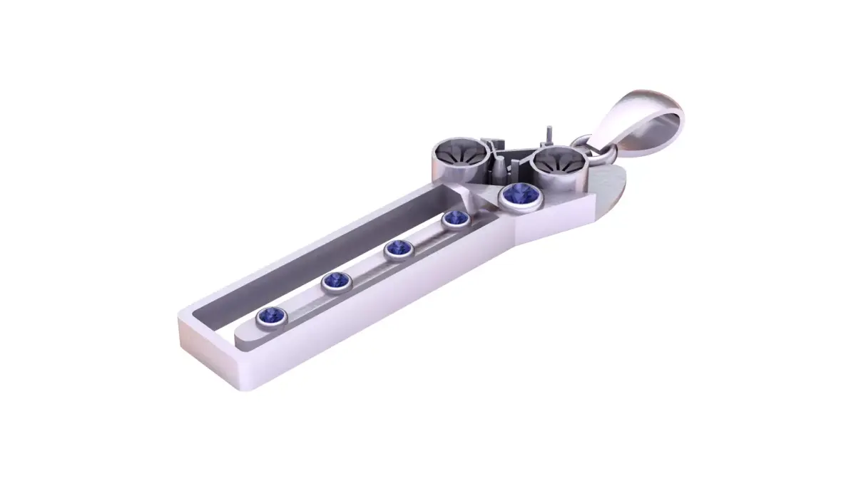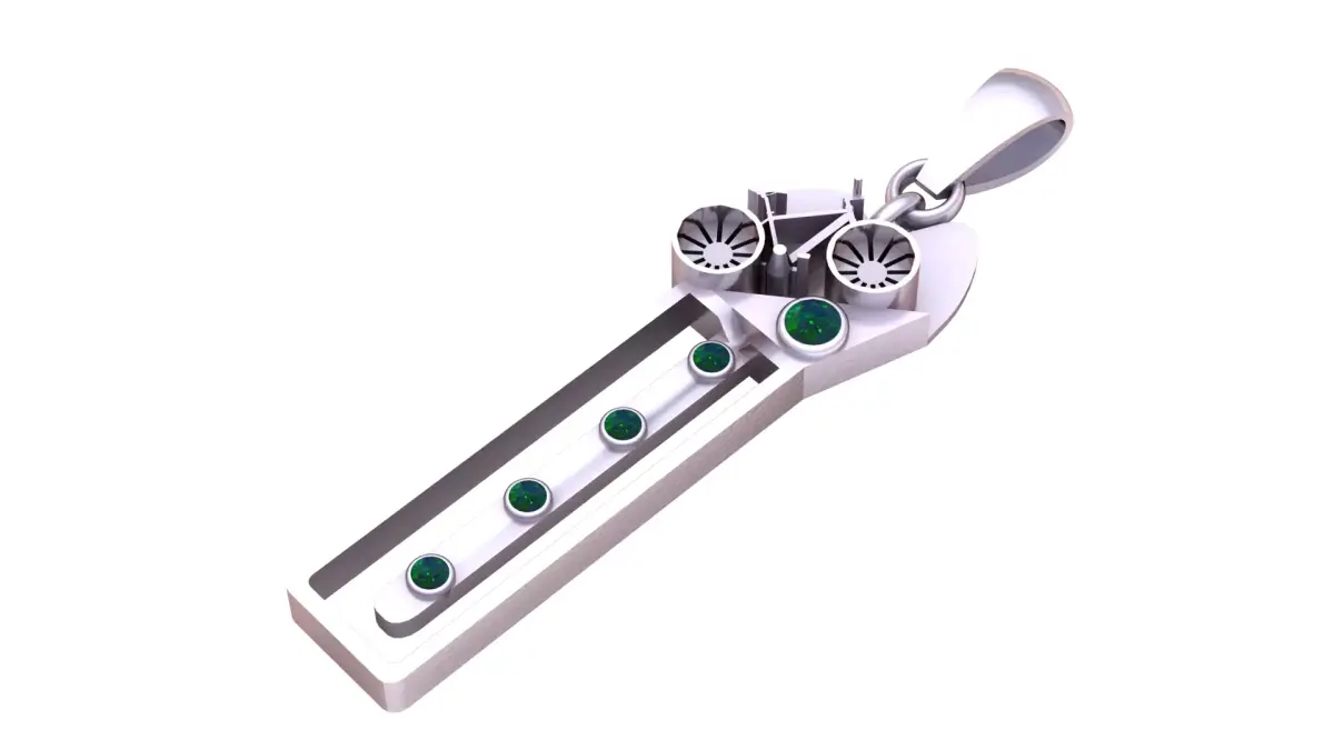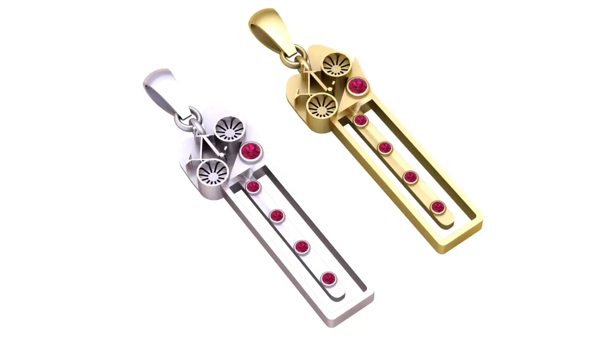 Inspired by futuristic aesthetics, this pendant combines mechanical beauty with elegant minimalism. Featuring engraved turbine-style details and gemstone settings, it gives a sleek luxury sci-fi look. Ideal for mech lovers, engineers, gamers, and those who love modern jewelry with a robotic feel.Ready for 3D printing and jewelry casting with clean edges and precise symmetry.