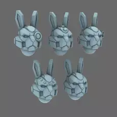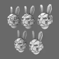 Come check out our Mecha Furry V10K Bunny Mech Helmets. These come with intricate 3D designs that make painting a breeze. This product comes with five different bunny helmet designs. This product is suitable for your favorite 28mm scale models of Grim Dark-themed Superhuman Armored Warriors of Humanity, like a Prime Master.