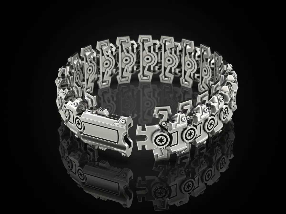 Recommended material - silver! Approximate metal weight (for lenght 210 mm): silver 925 Sterling – 72.4 grams. Model avalible in STL format for prototyping. Geometry is healed, and fixed all the bad with RP Magics software You can check out my other products by clicking on the author name artchagur. Any questions? Please contact me. Thank you!
