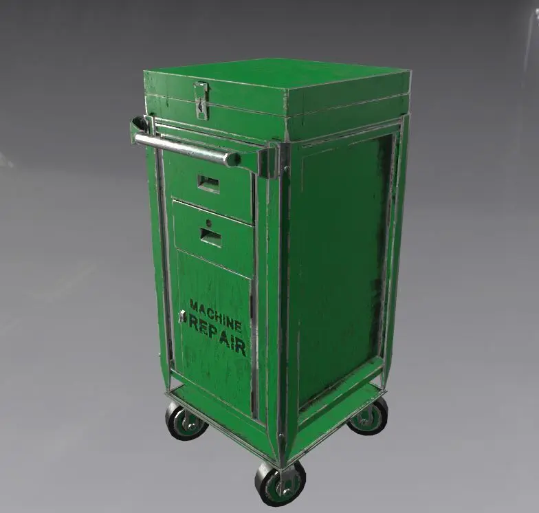 Repairman steel toolbox model.It has PBR and game ready.All maps are in PNG formats and 2048x2048-in sizes.Base,Normal,Height,Metallic, and Roughness maps are included.