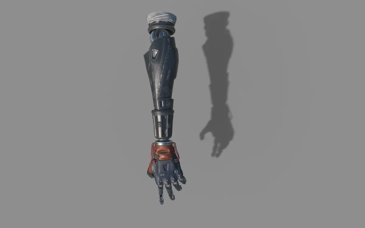robot arm hand sci-fi android mechanical arm of the character Sci-fi Samurai Ninja from Adarnia : 3D CG Sci-fi short film by Clem Escosoramechanical arm robot hand with leather cable and carvings