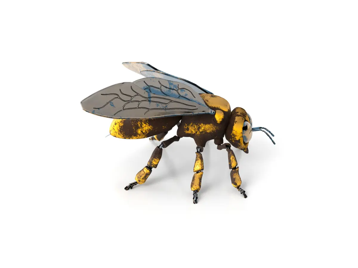 Post apocalyptic mechanical bee with metal corrosion.