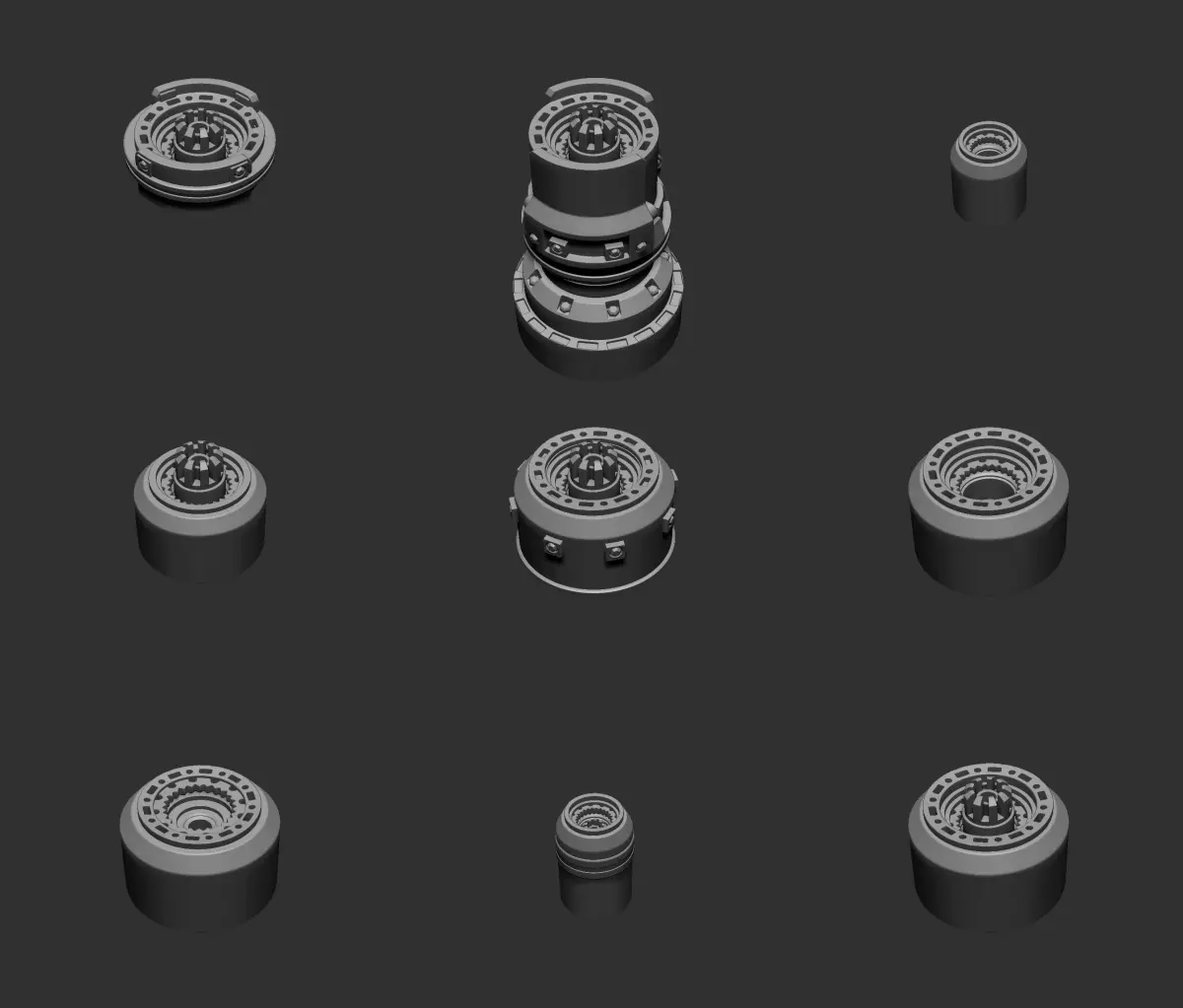 Mechanical Cylinders to use as parts of mechs or on it's own.There is a total of 9 mechanical cylinders.