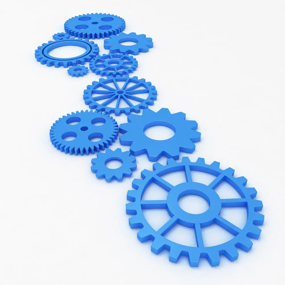 Mechanical gears belt is ready to smooth 3d model. Model has separate meshes.