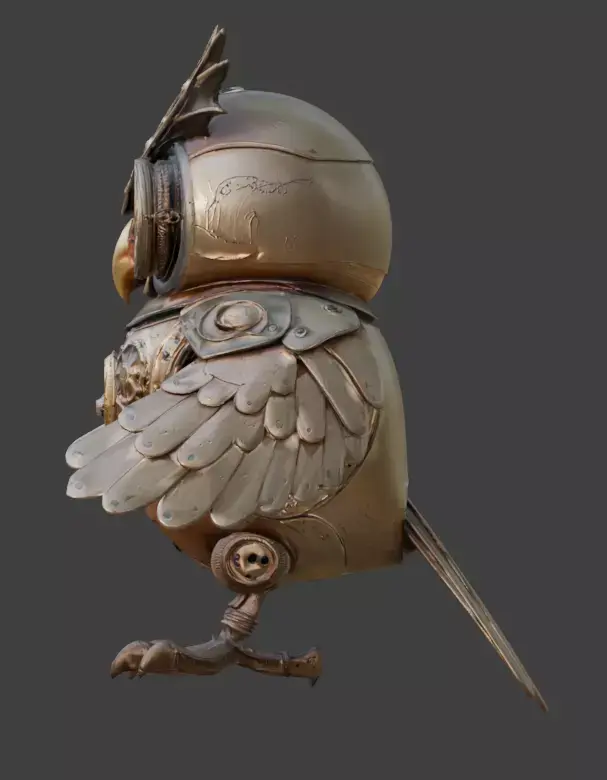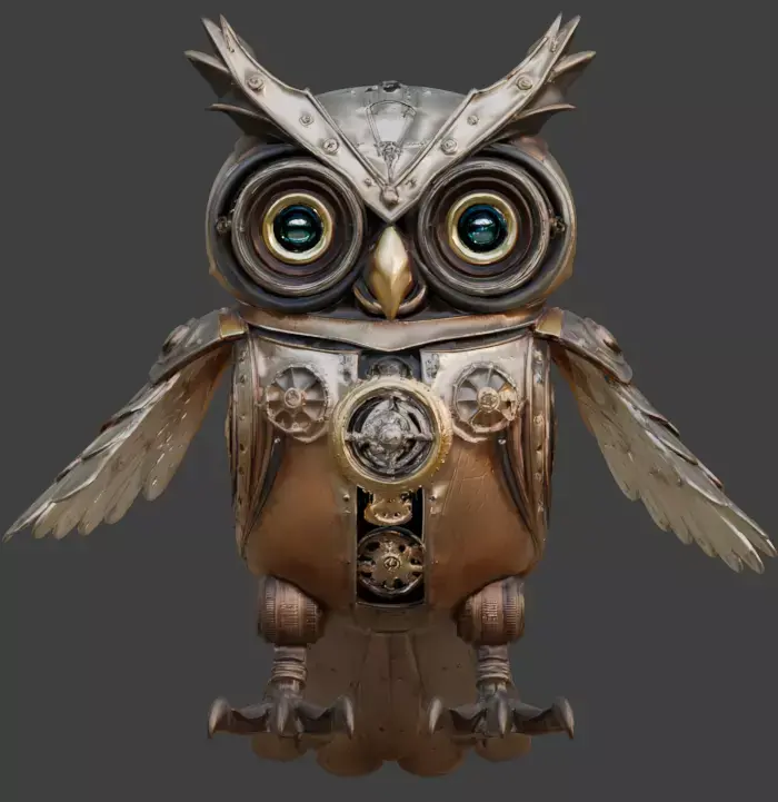 Key FeaturesRetro-Futuristic Steampunk Design: A meticulously crafted character that perfectly balances biological owl proportions with industrial machinery.