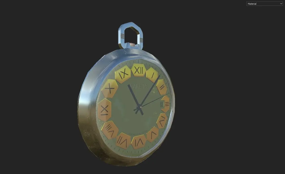 Vintage Russian mechanical pocket watch – Raketa. Movement Raketa 19 ruby jewels. Calendar. Central second hand. Made in USSR. Petrodvorets Watch Factory (Raketa Watch Factory). This model is low-poly with PBR textures.