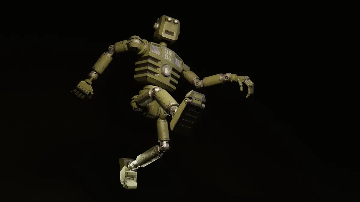 Ski-Fi Robot in retro style. Humanoid Iron steampunk Robot. 3D model created rigged and animated in Blender 3D.