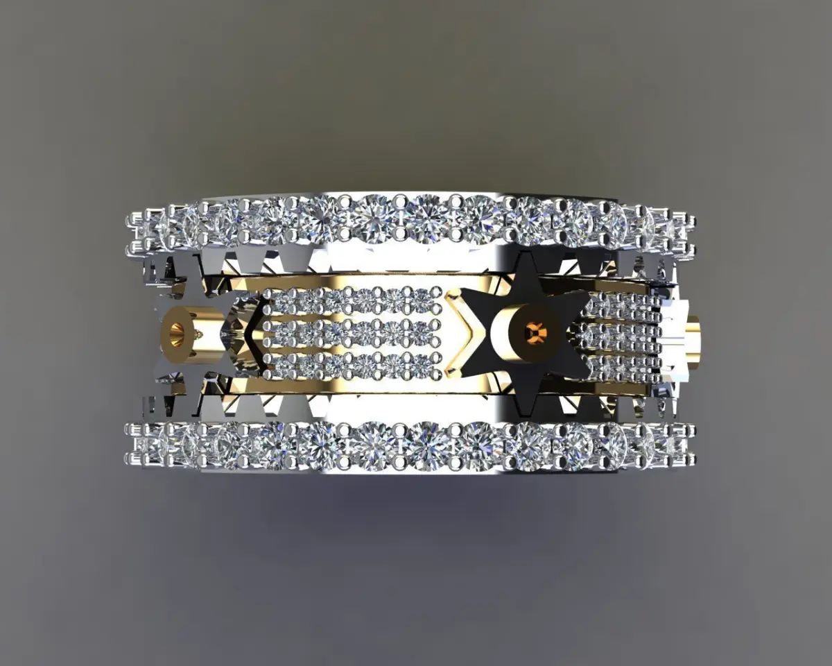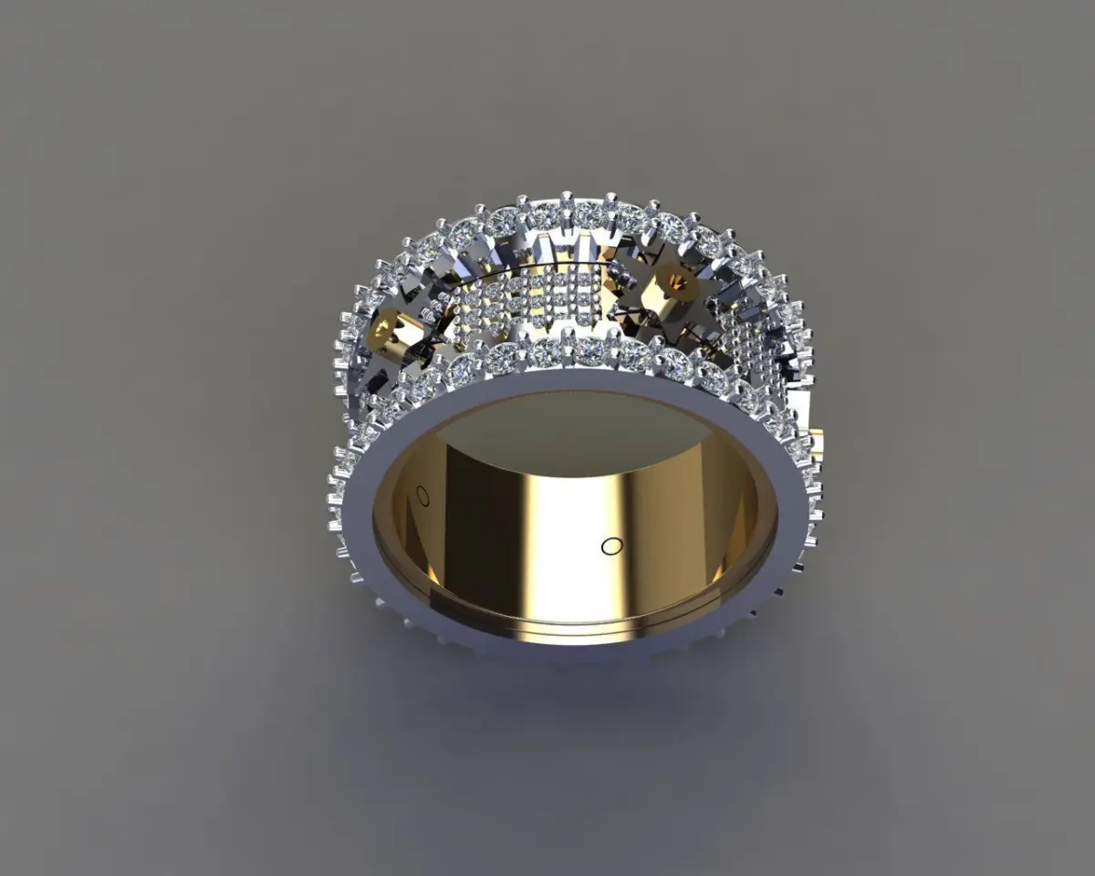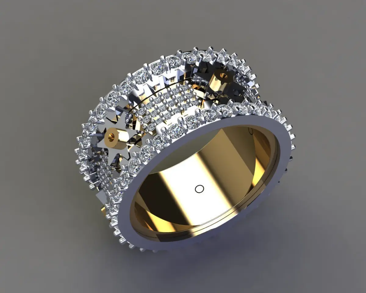 Step into the future of jewelry with our mechanical rotating ring, a masterfully engineered piece that unites movement, elegance, and bold design.Weighing 22.16 grams, this creation is crafted with intricate attention to both form and function, featuring a rotating mechanism that brings it to life — not just to wear, but to experience.