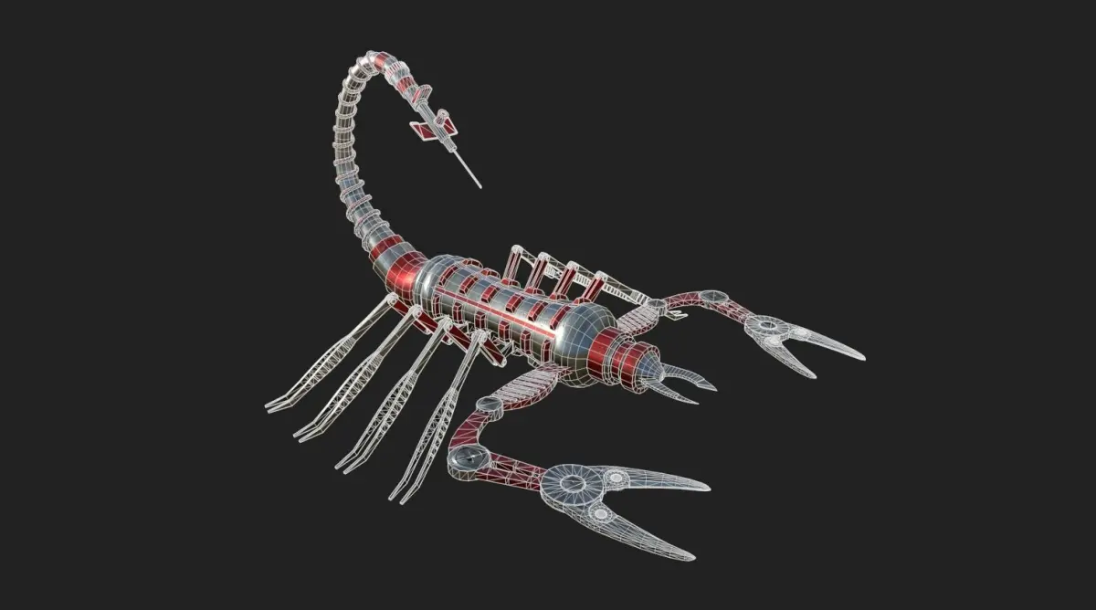 Machanical scorpion. He is made of surgical components.UV MappingTextures PBR BaseColor,Height,Metallic,Normal,Roughness