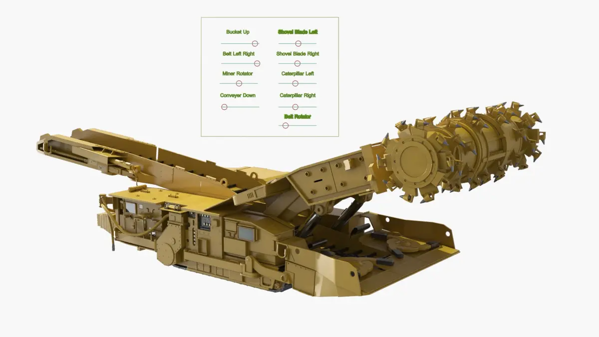 Mechanized Coal Cutting Machine with Conveyor Yellow Rigged is fully rigged and is ready to be animated. You can easily position it the way you need or animate it the way your project requires using helpers in 3D Studio Max. See the turntable to get an idea of how rigging works.