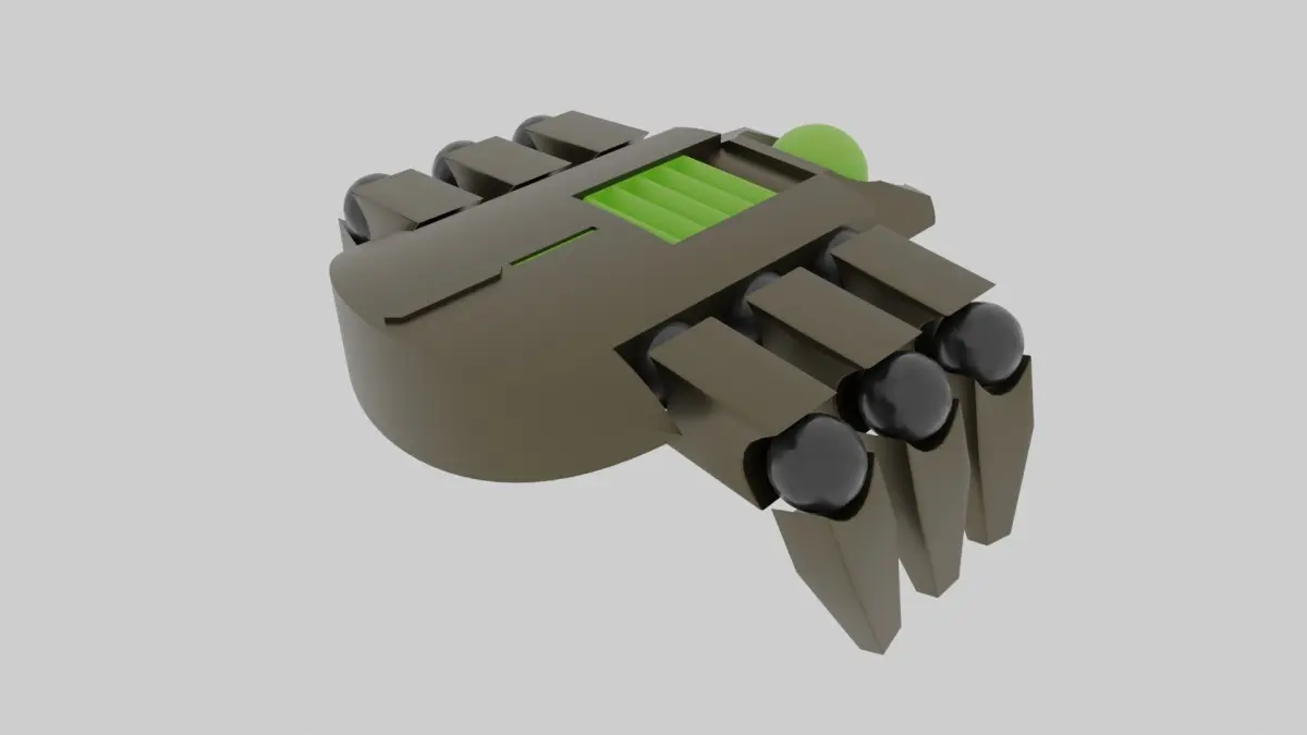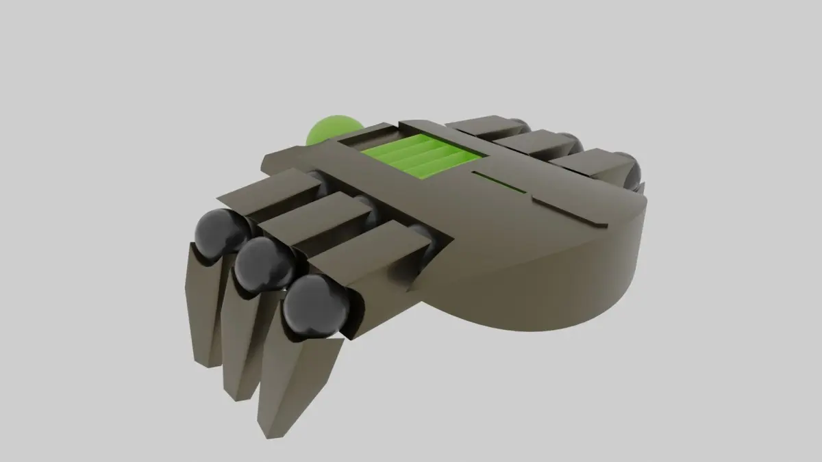 You can individually pose the legs by selecting the last bone in the rig. Select the empty box around the main body to move and rotate the whole model. The head can be articulated as well, and the brightness of the neon glow can be changed by altering the Emission Strength in the material properties.