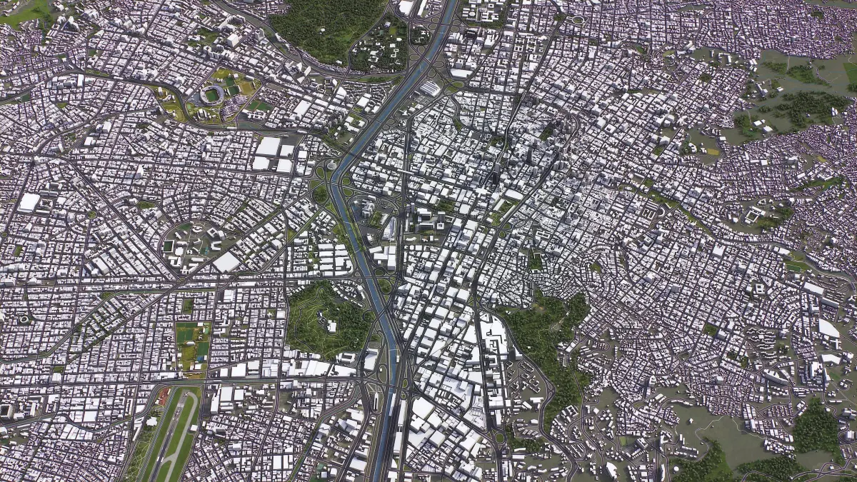 - Integrated Urban Features — Custom placement of buildings, roads, and vegetation on the terrain