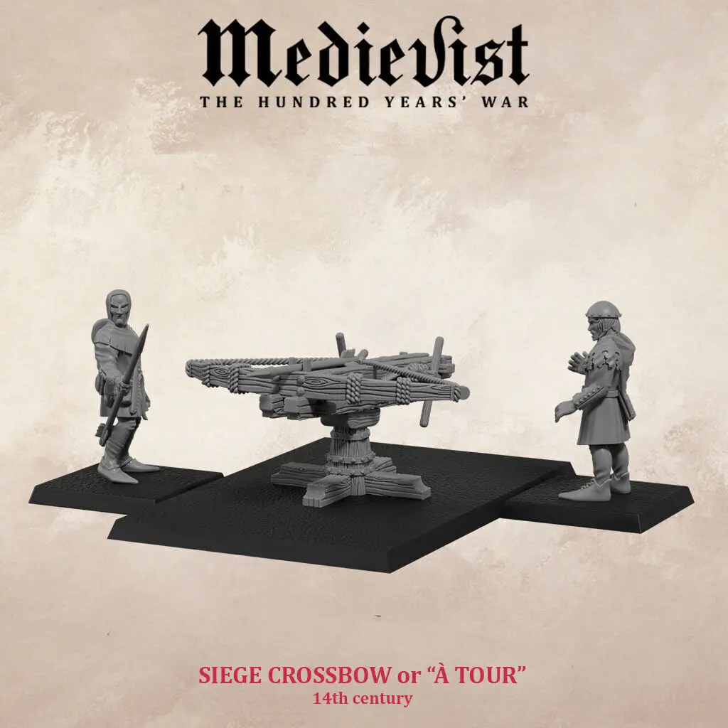 Siege crossbows or à tour appeared from the 11th century and were inspired by portable crossbows. They are mainly used during sieges to destroy weapons and siege engines.