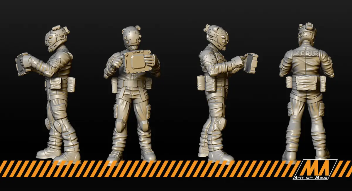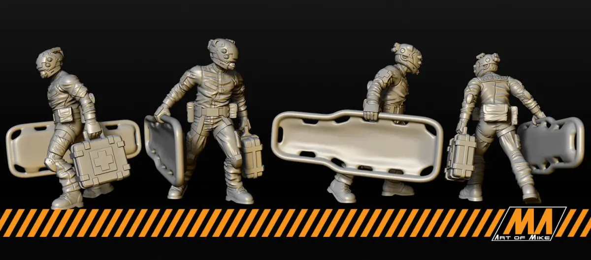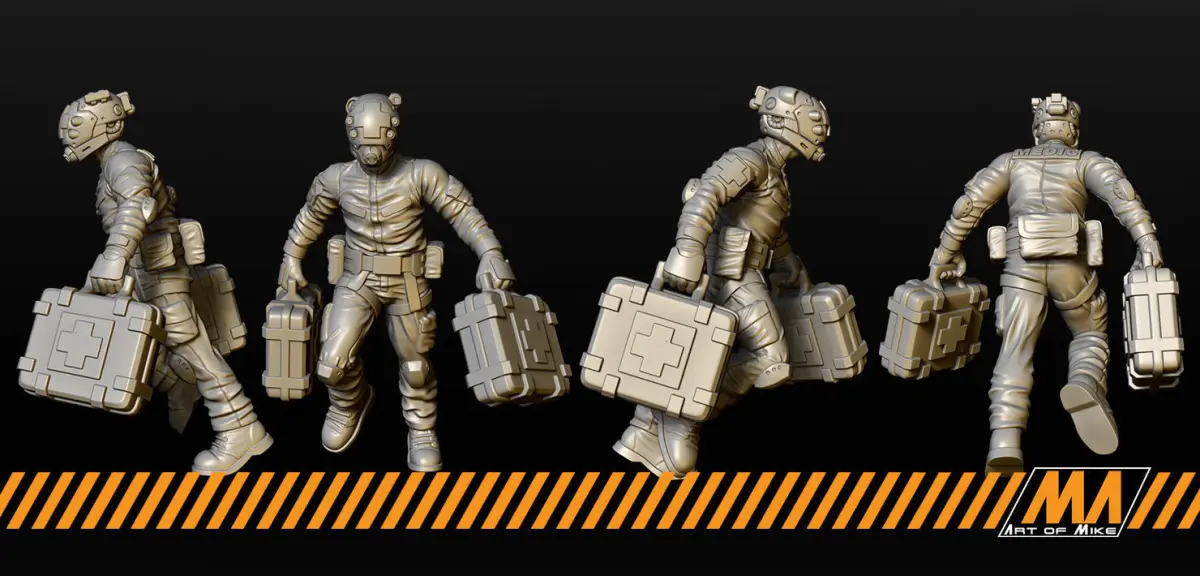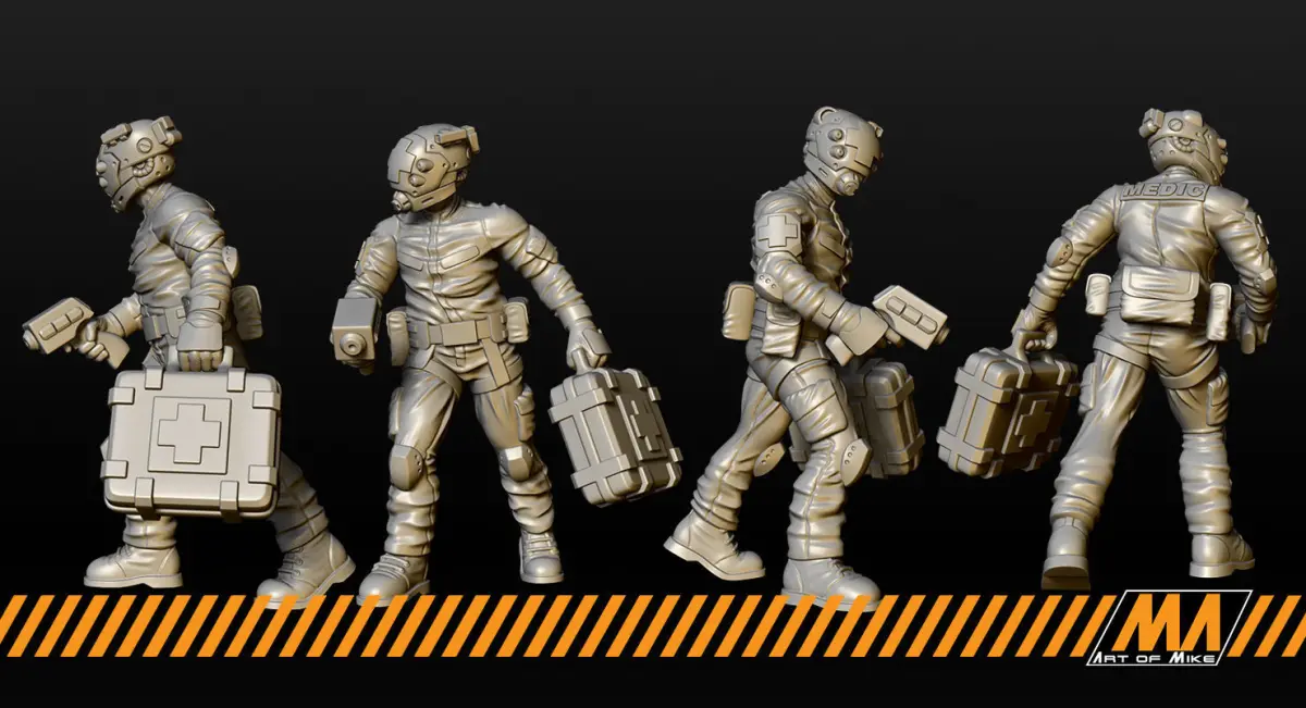 Team cyberpunk inspired medical personnel for your tabletop gaming.