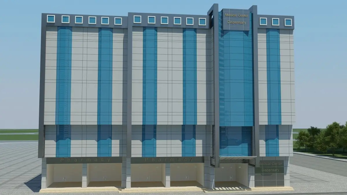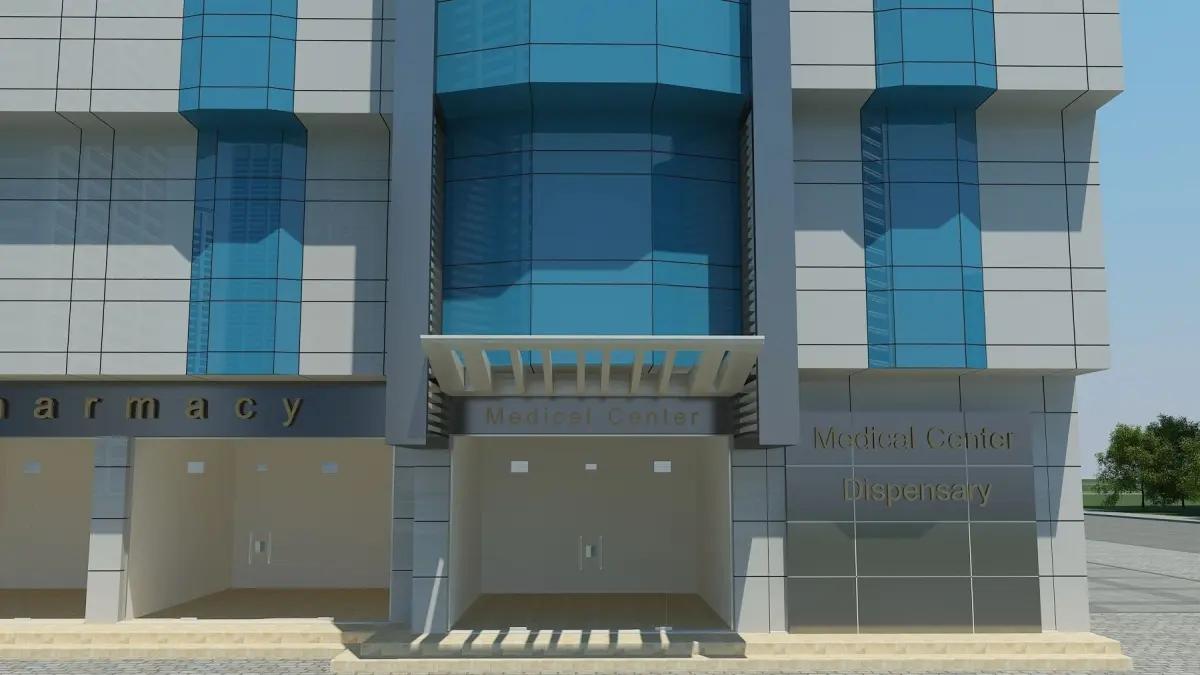 Medical Center Building model.* All Textures and path using the English name, to ensure compatibility.Formats:* 3ds * fbx*with File 3D max 2011* Opens and renders without errors.* Lights , plants, Cameras , and other background is not included in the 3D model scene