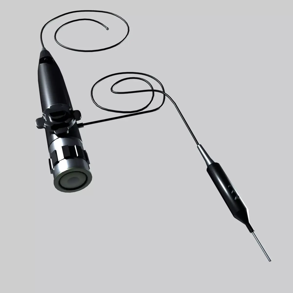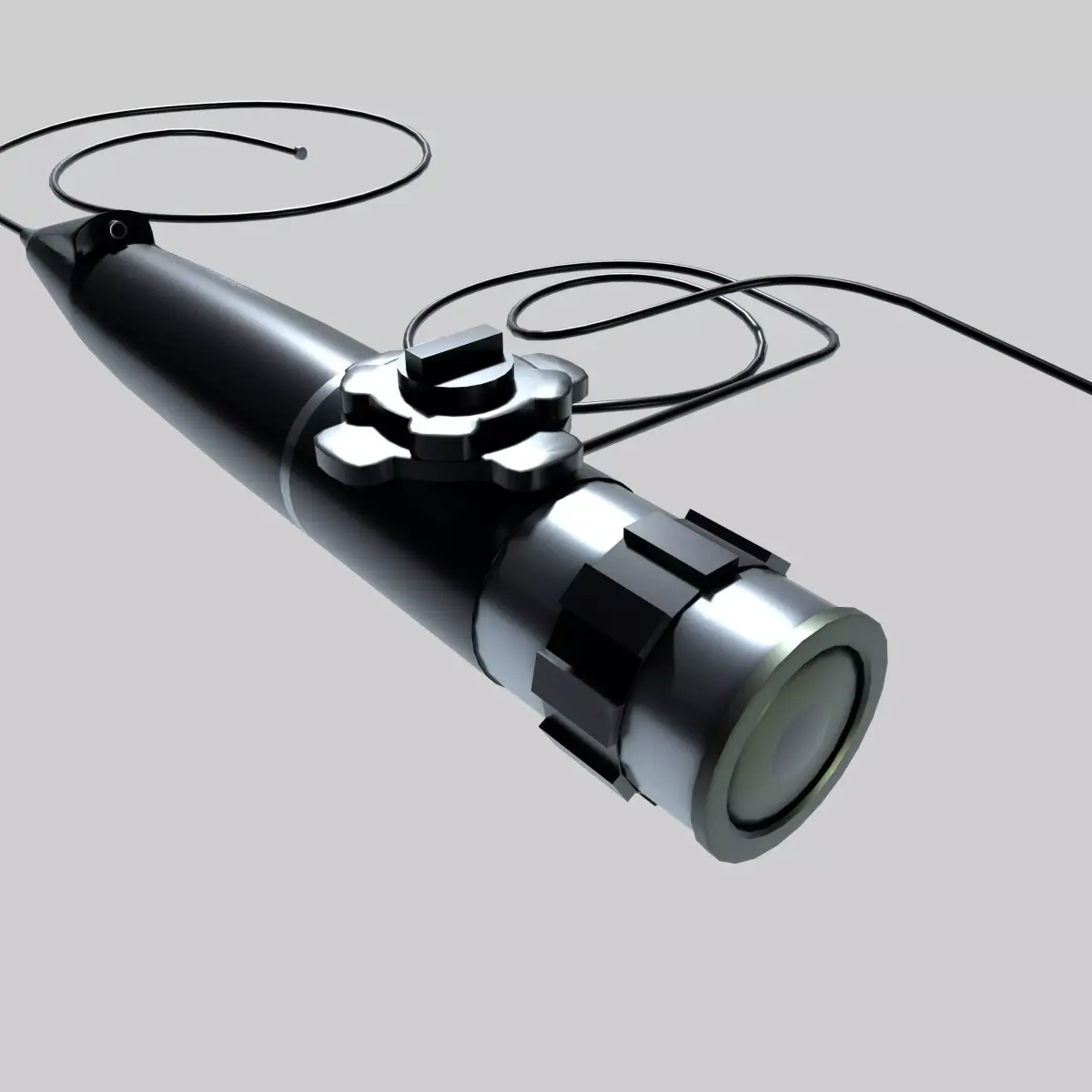 A high-quality 3D model of a medical endoscope, designed for realistic visualization in healthcare, simulation, and training environments.This model replicates the professional design of endoscopes used in clinical and surgical procedures, including a detailed handheld probe, cable, and scope tip.