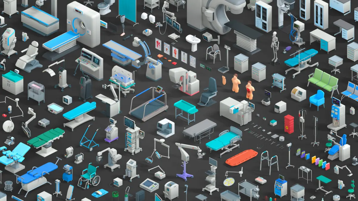 KEY FEATURES - 440+ medical 3D models divided into the following categories: Medical Equipment, Laboratory, Diagnostic, Ophthalmology, Rehabilitation, Pediatrics, Dentistry, Surgery, Hospital Props, and more. Perfect for creating hospital 3D environments, clinics, and medical facilities.
