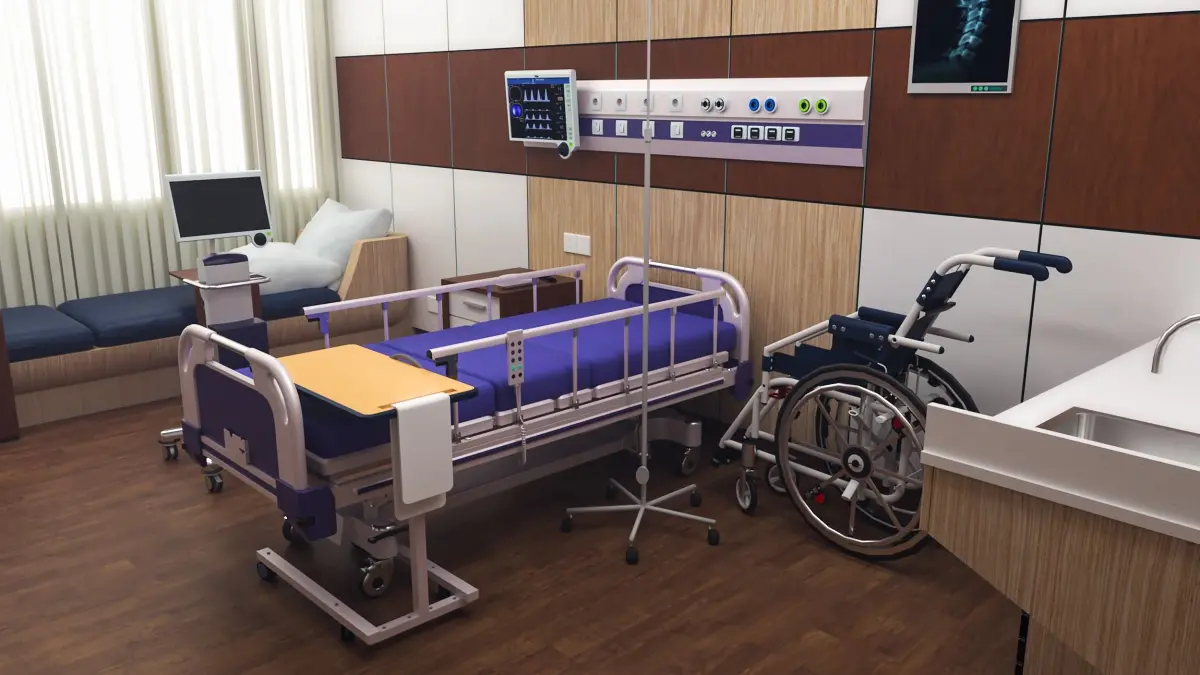 High-Detail 3D Model: Modern Hospital Room