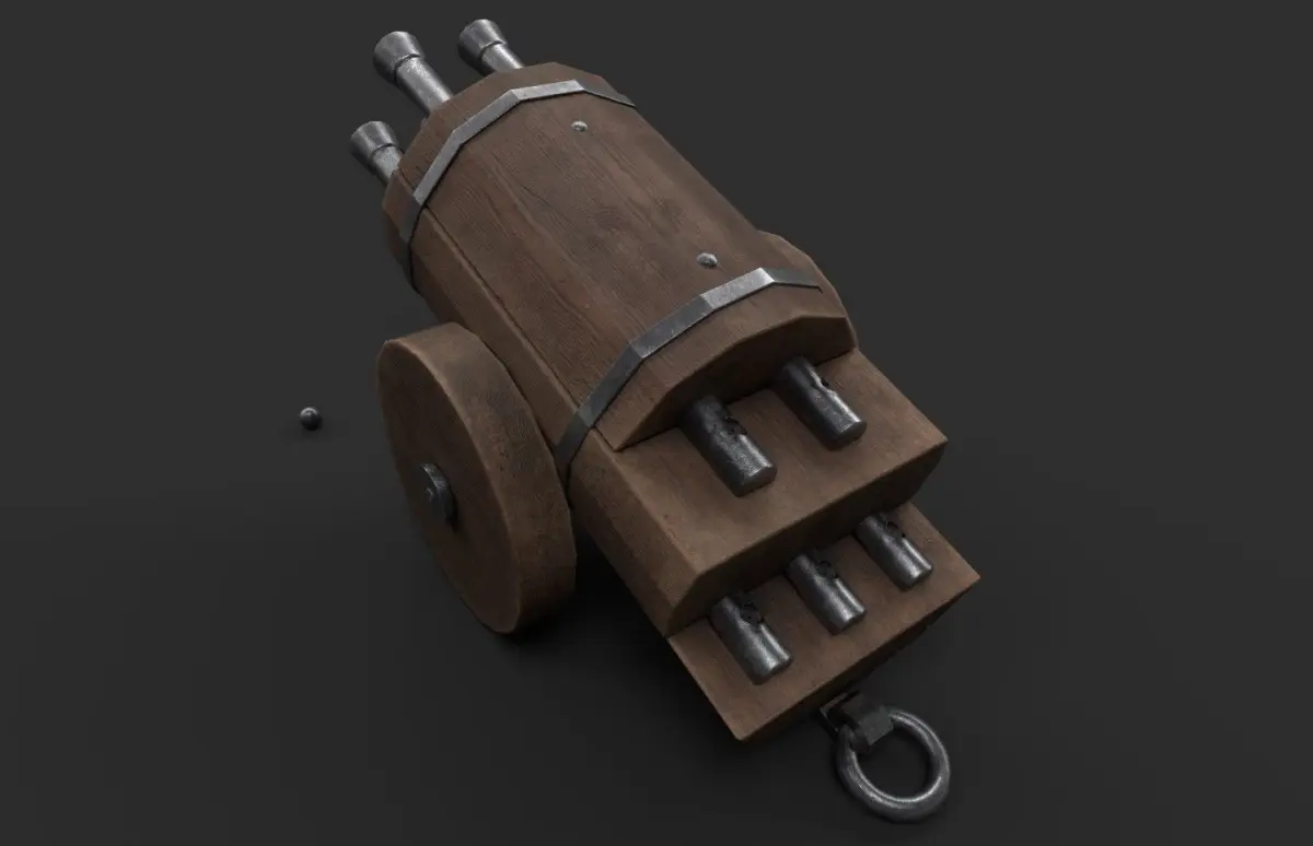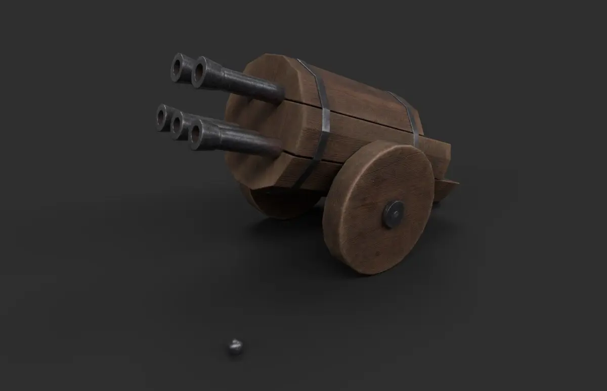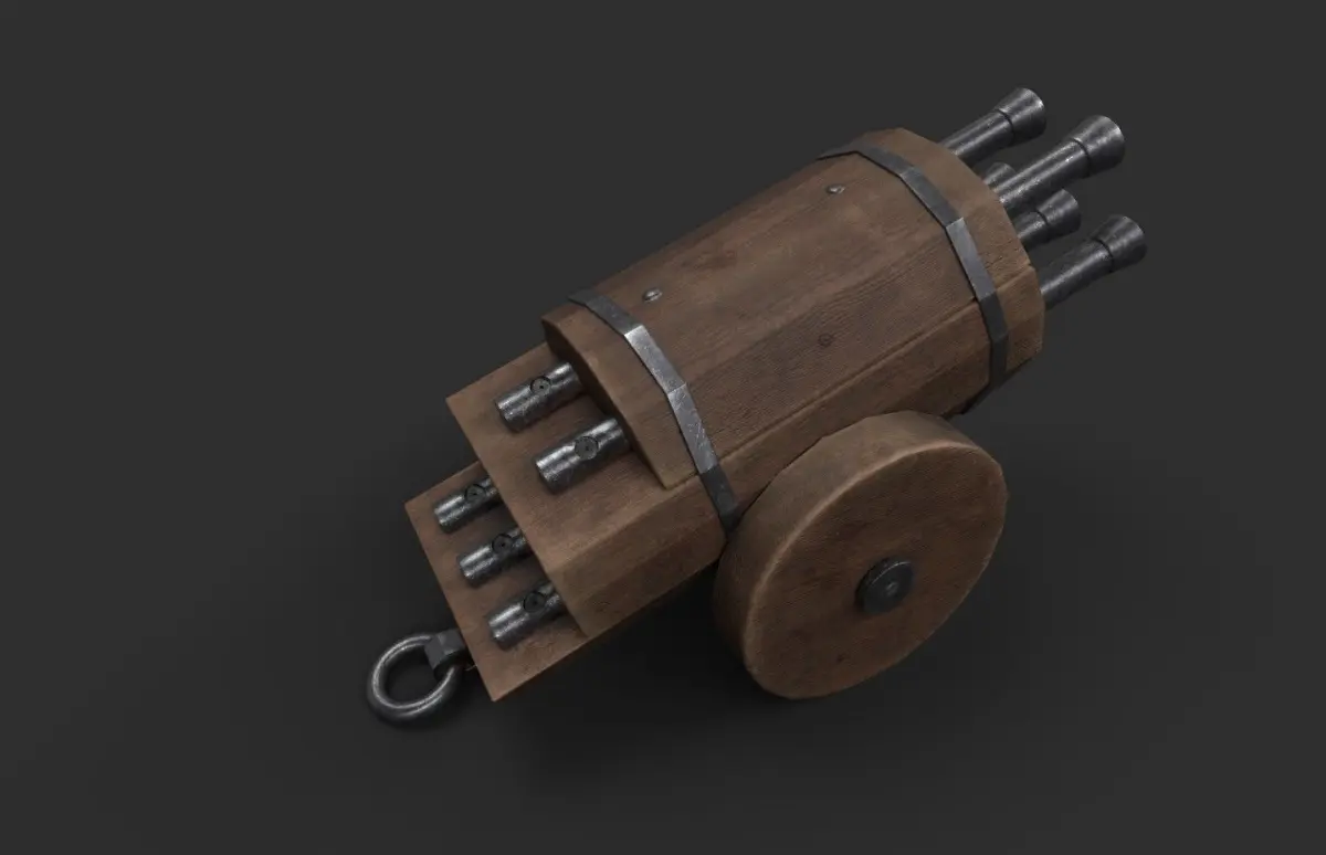 Low-poly historical reconstruction of the oldest surviving organ gun in Germany, dating back to the 15th century. It is modeled after an exhibit from castle Sigmaringen’s armory. This gun is capable of firing up to 5 shots at the same time. It measures about 84 x 45 x 48 cm.