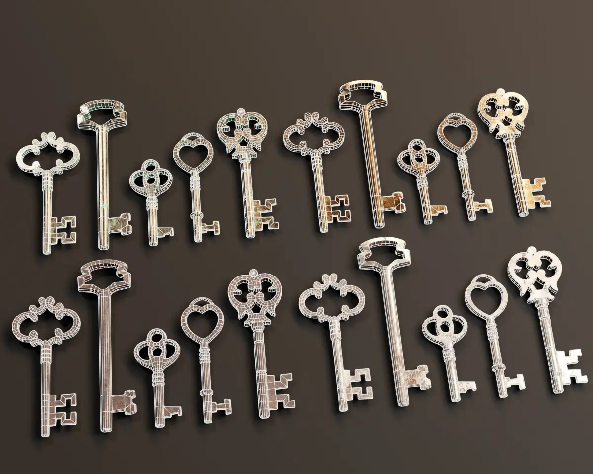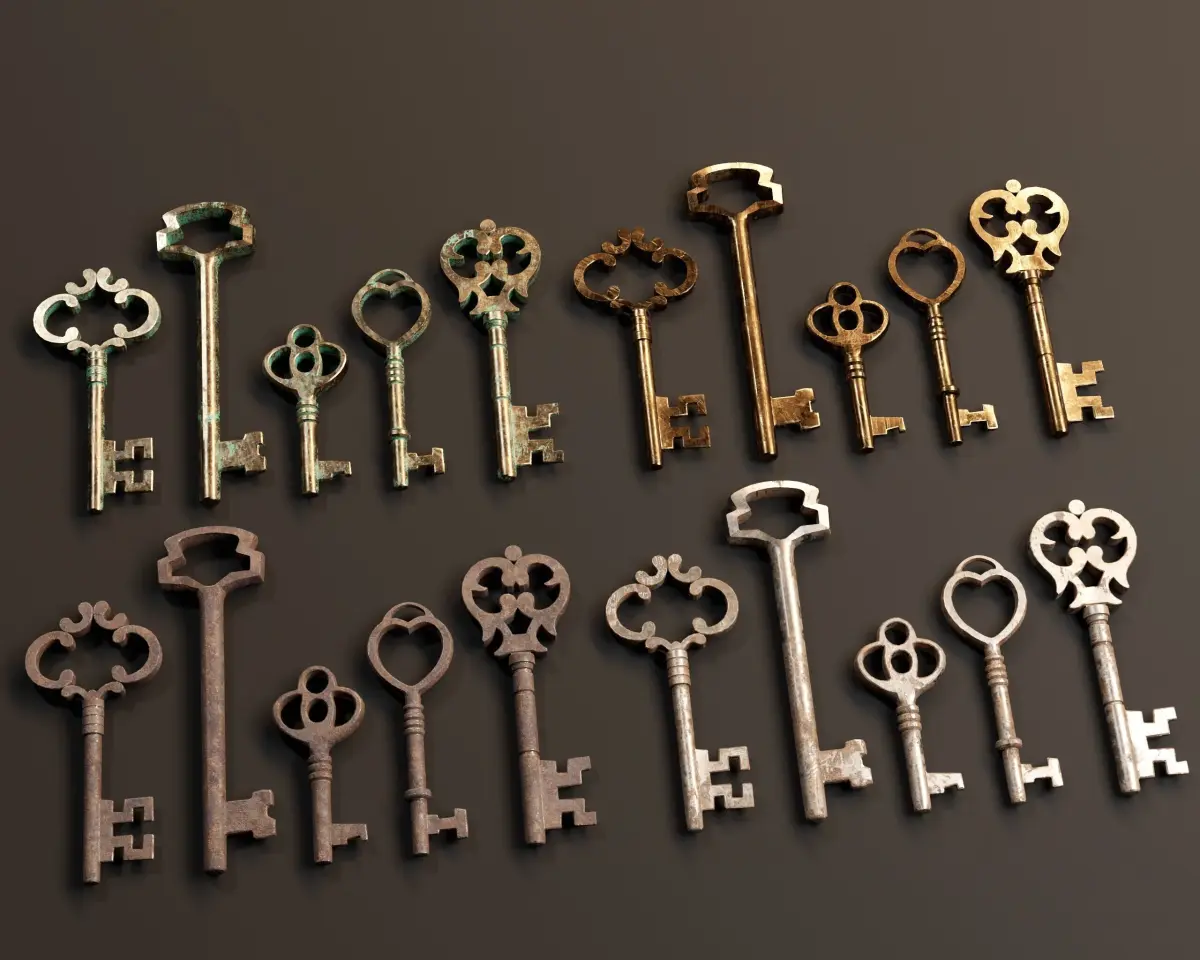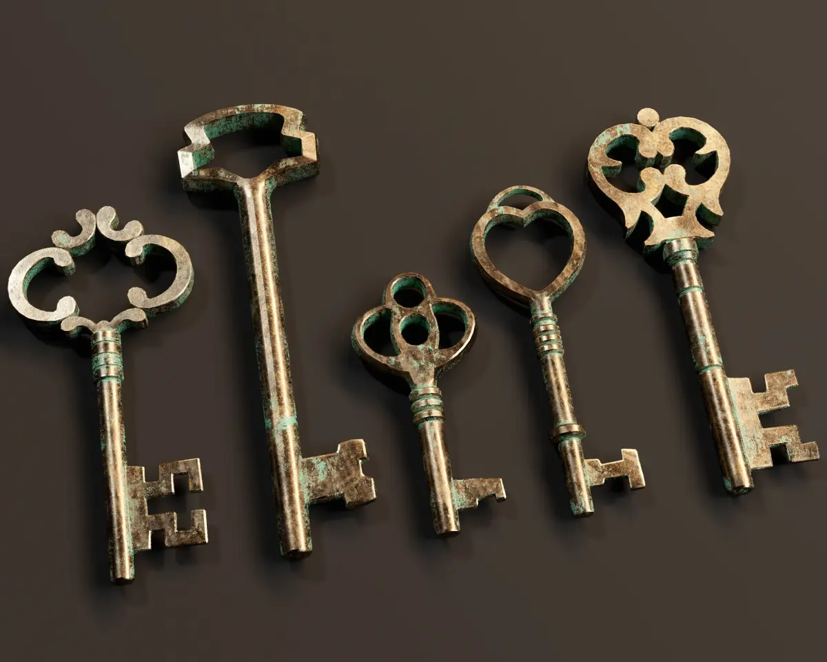 Medieval Antique Keys Set 2 3D Model. This model contains the Medieval Antique Keys Set 2 itself