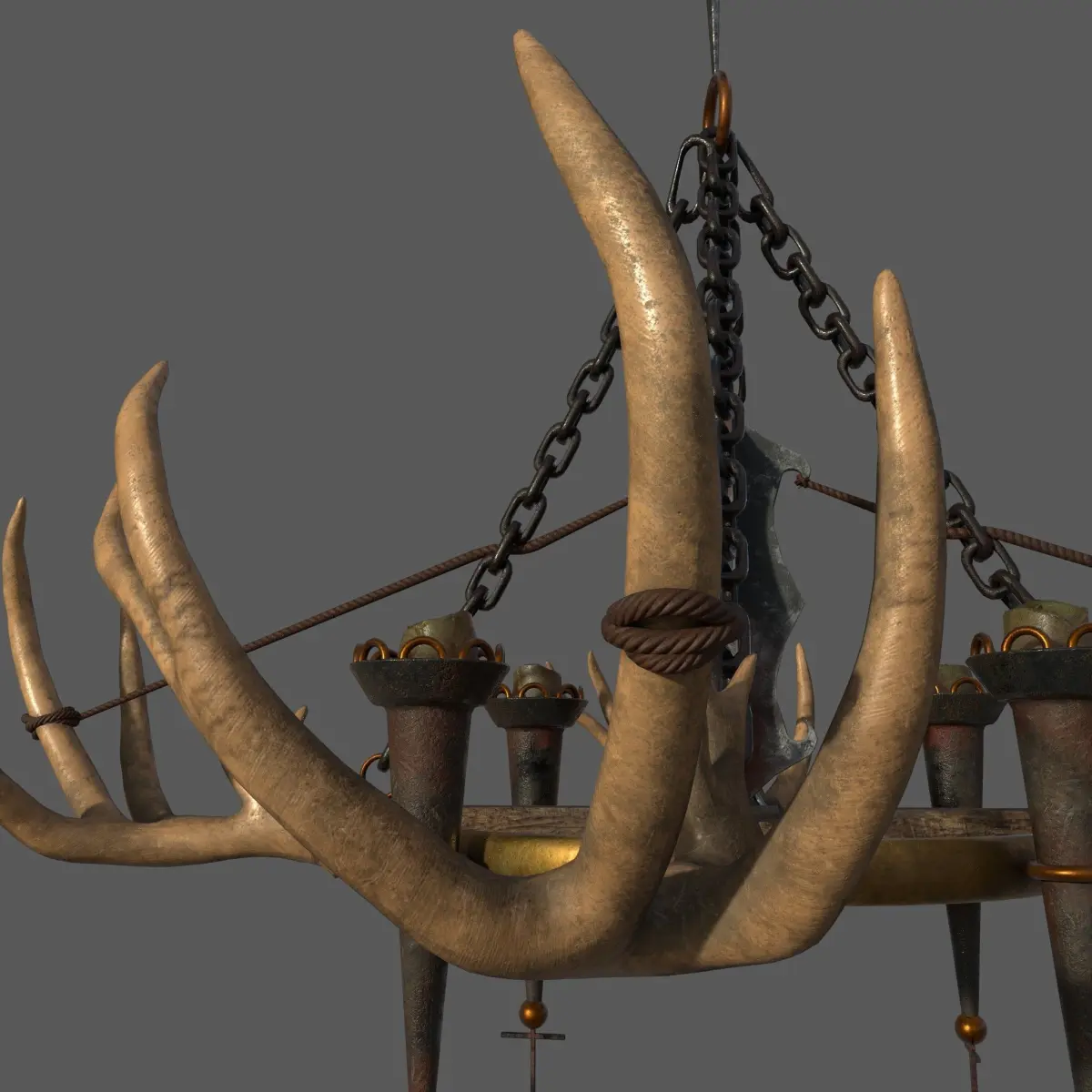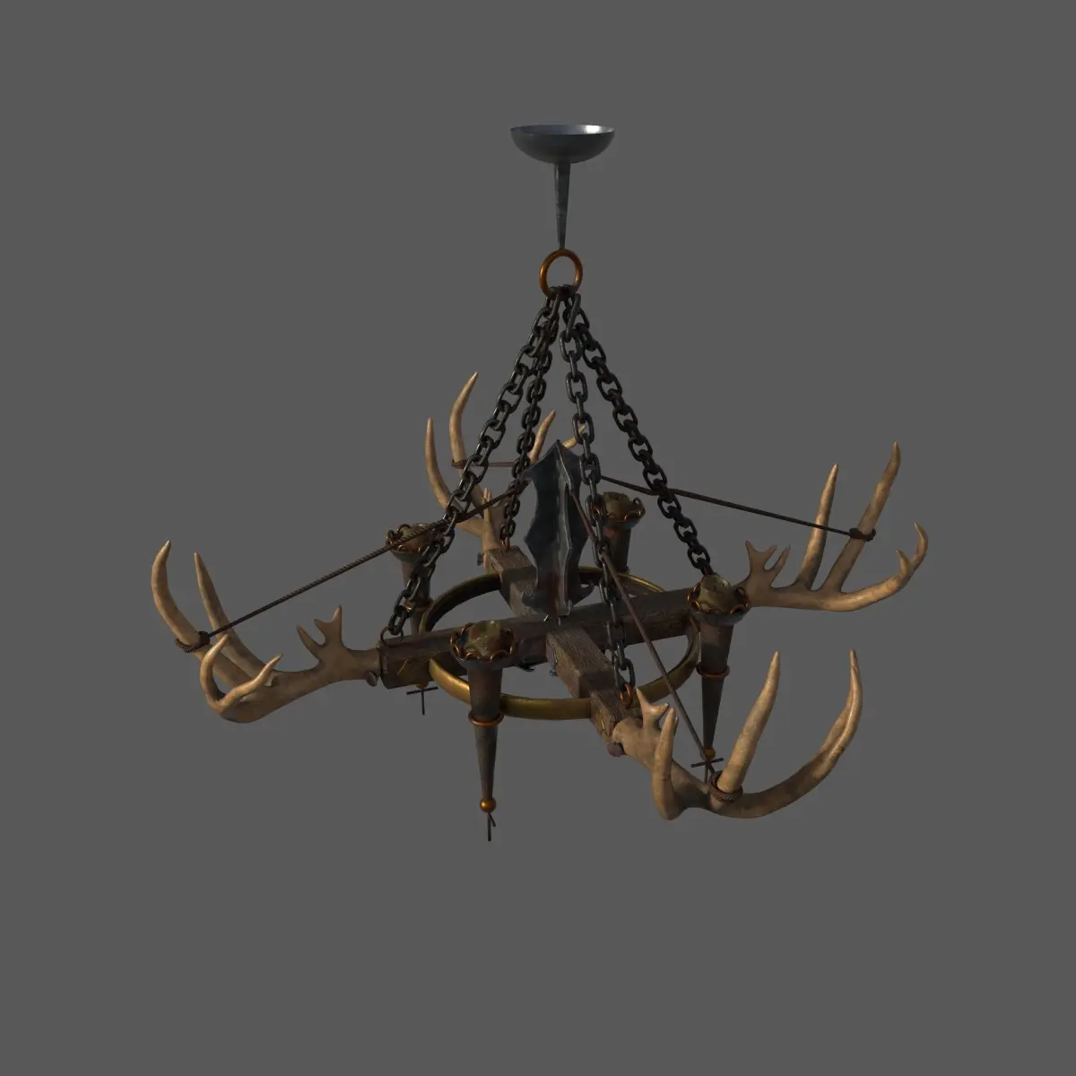 Medieval Antler Chandelier Design Three 3D Model PBR Texture available in 4096 x 4096 Maps include : Basecolor, Normal, Roughness, Height and Metallic. All Preview renders were done Marmoset Toolbag 4 Scaled to real world scale. Customer Service Guaranteed. From the Creators at Get Dead Entertainment. Please like and Rate! Follow us on FaceBook and Instagram to keep updated on all our newest models.