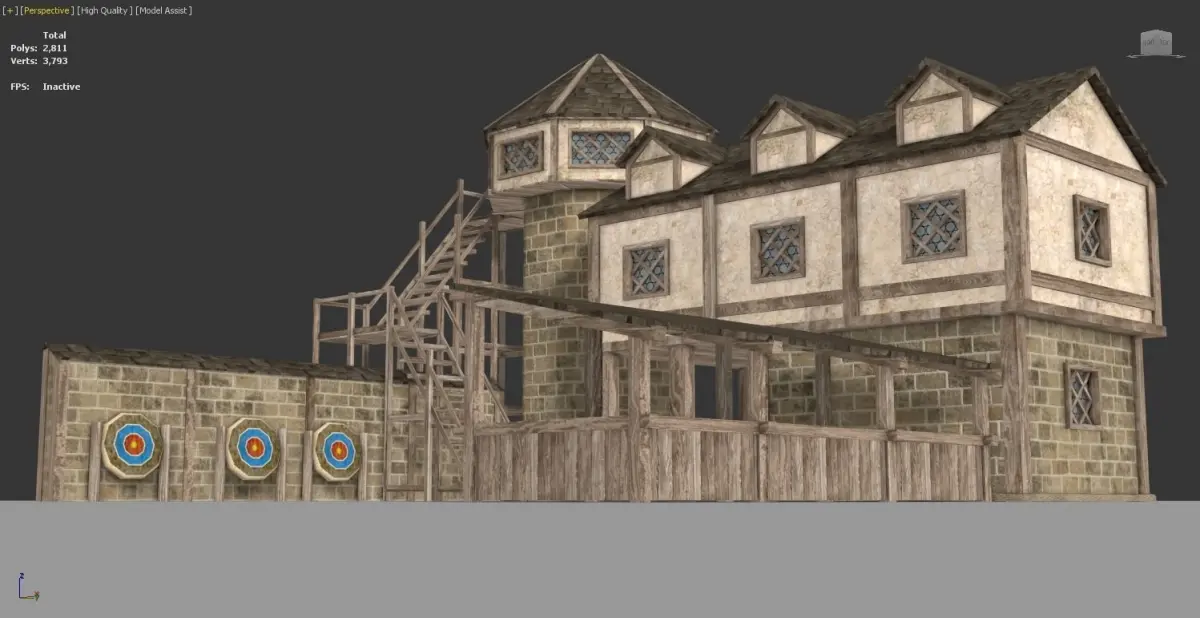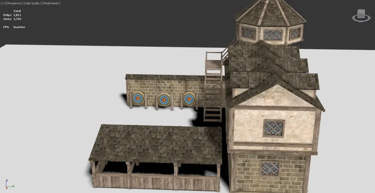 Low poly medieval archery building fully textured.