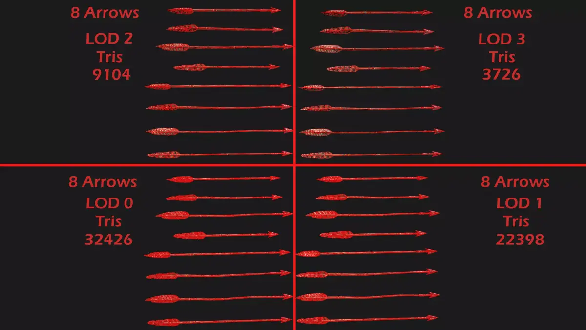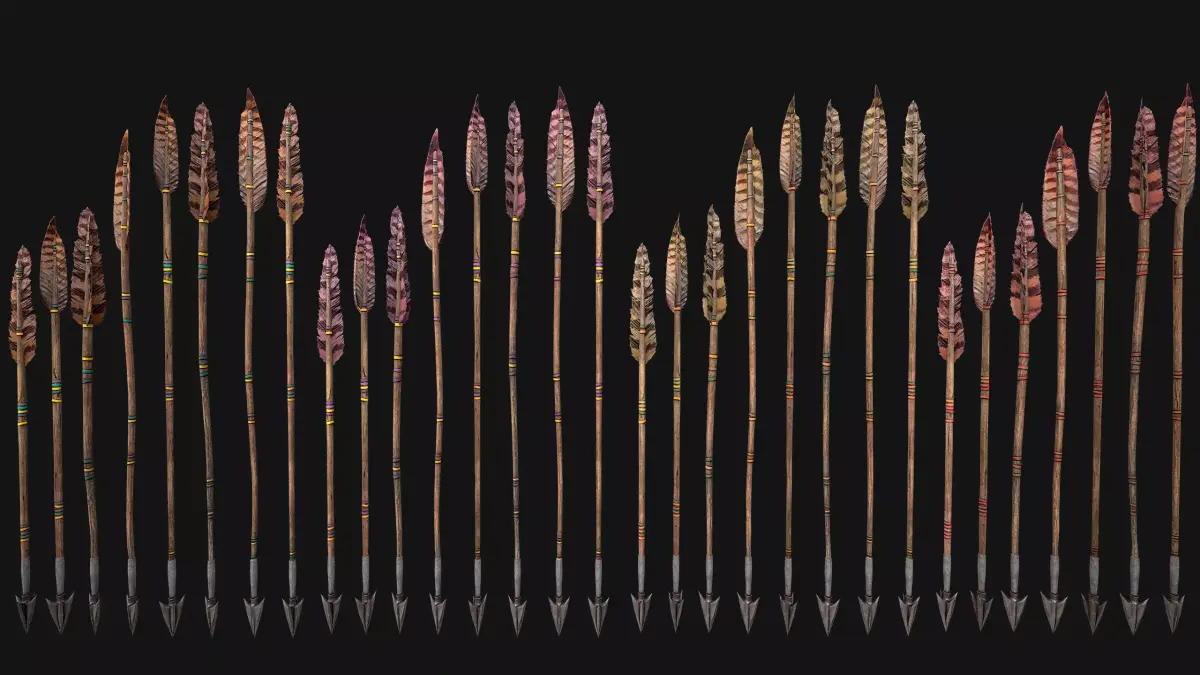 Game ready models .The model contains lods, detailed information on the images.Stylized and detailed Medieval Wooden Arrows fully textured, sculpted and rendered with Physical based rendering (PBR) - Shown images have been rendered in Marmoset Toolbag .The set contains 8 models of arrows.The set contains 4 color options.
