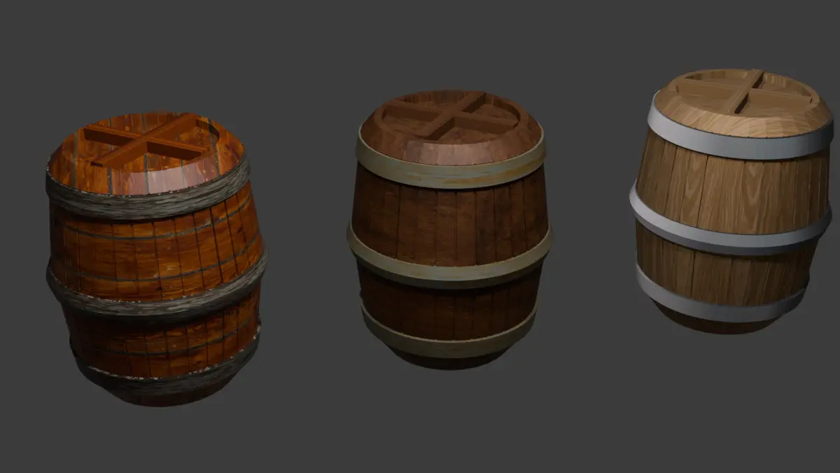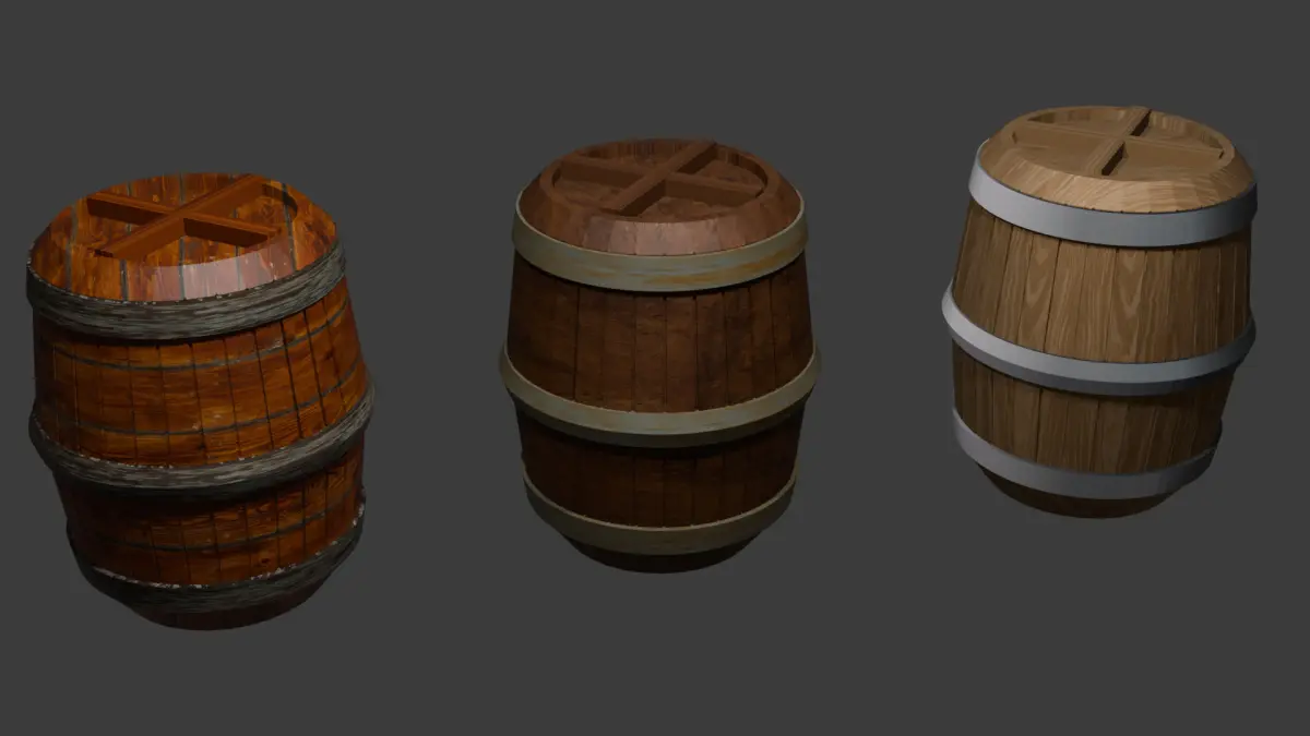 medieval items and assets. horse carriage, wooden barrels, wooden chest, military chest, jewelry chest