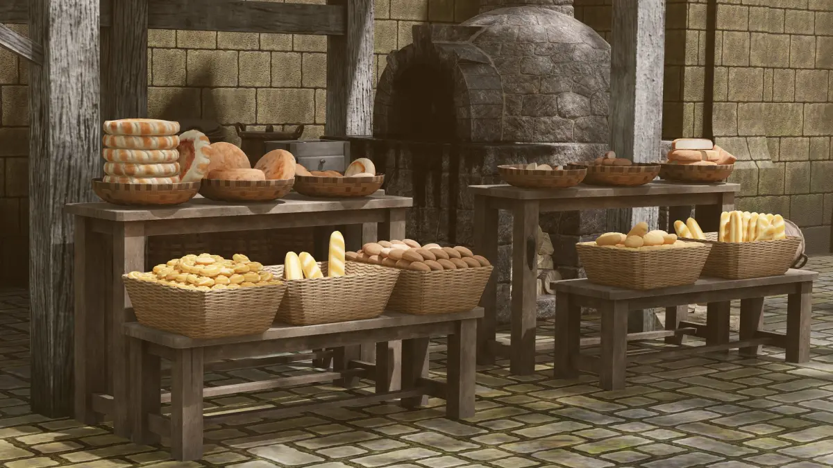 This is an unique asset to depict a Bakery shop during the medieval period.