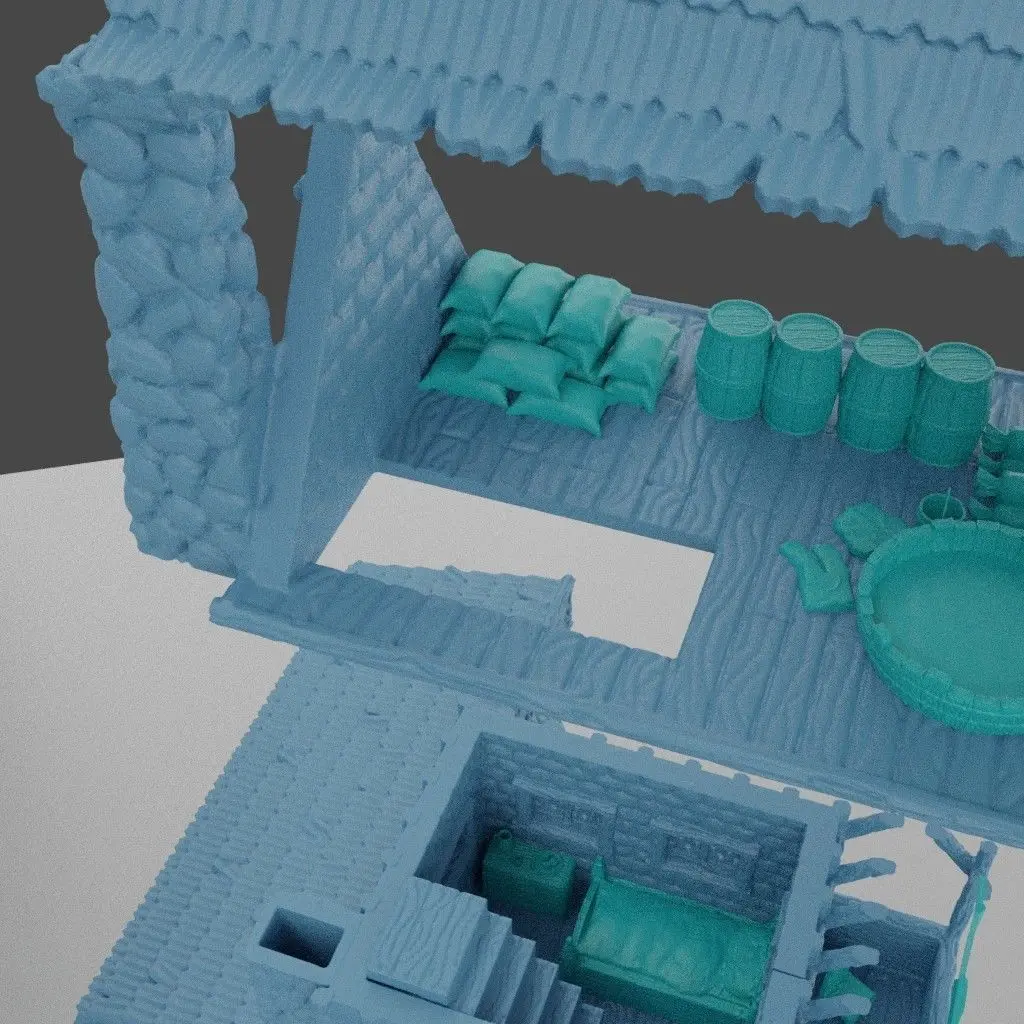 Medieval Bakery Adjusted to 25 mm miniatures Inside can be playable FDM Print preferred (Gray good ) No need to slice adjusted to Ender 3 pro v2 standarts Miniature not included also all scatter terrain imbued to mesh