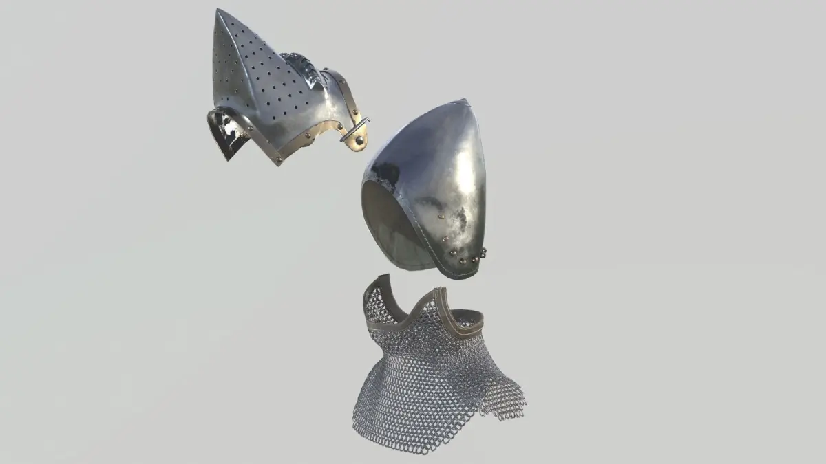 Model in 3 parts, with removable visor, and chainmail. ChainMail can also adapt to the Medieval Bascinet Helmet here :https://www.cgtrader.com/3d-models/military/armor/bascinet-helmet