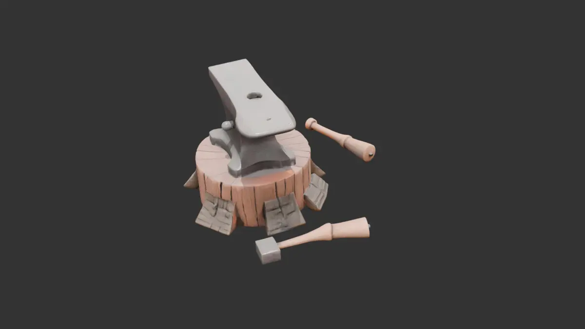 This detailed 3D model showcases a medieval-style blacksmith anvil on a wooden stump, accompanied by hand tools such as a hammer and tongs. Perfect for fantasy villages, medieval workshops, or blacksmith interiors. The model features aged metal surfaces, scratches, and forge grime to enhance realism. Whether used in a blacksmith’s shop or as part of a forge diorama, this asset brings a gritty, historical ambiance to your scene. The tools are placed casually around the anvil to suggest active use.