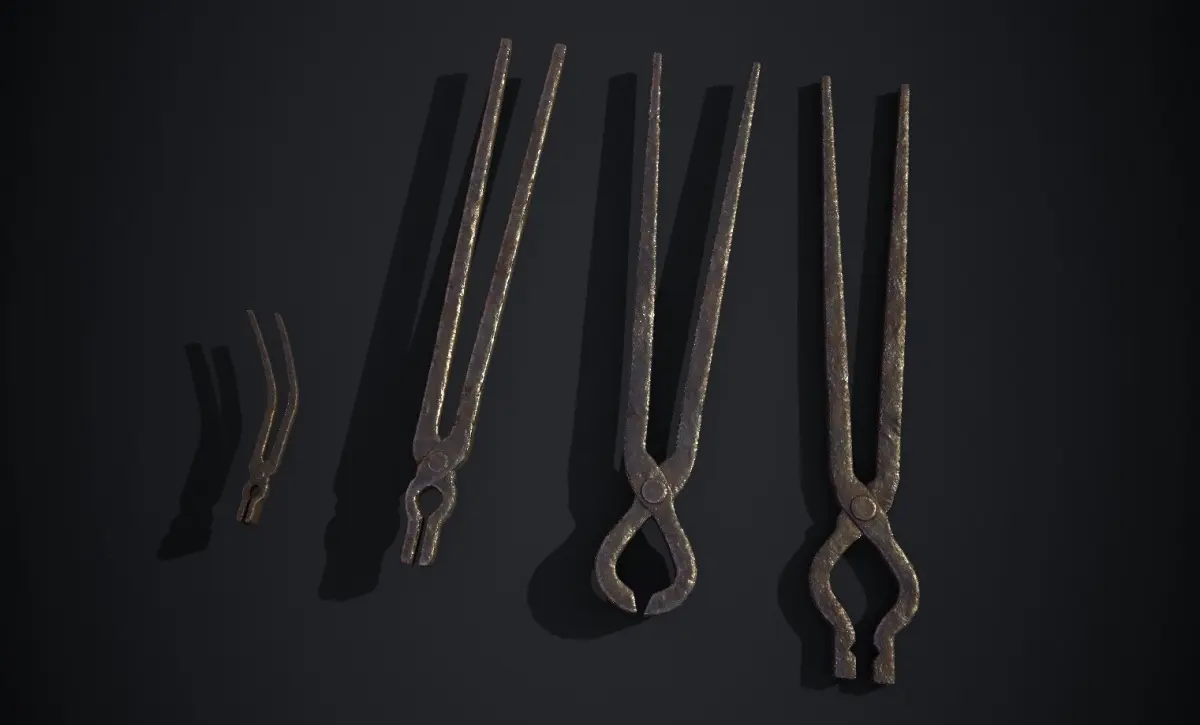 Ignite your projects with the authentic grit of a medieval forge through this Medieval Blacksmith Tongs collection! This pack features four unique tongs models, each meticulously designed to embody the rugged utility of a blacksmith’s essential tools. From long, sturdy tongs for gripping molten steel to shorter, precise designs for delicate work, these models add historical depth to any game environment, animation, or render.