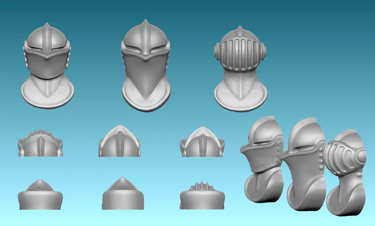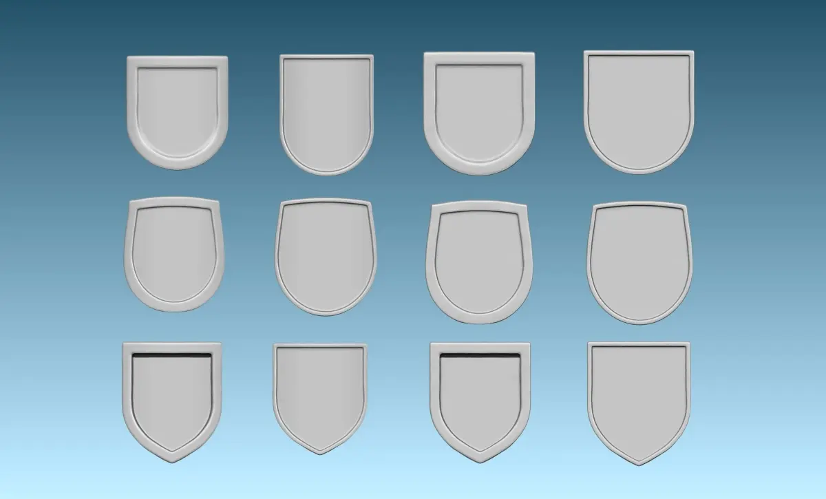 Medieval blazons with interchangeable pieces, different shields and helms. The models are provided in stl and obj format.