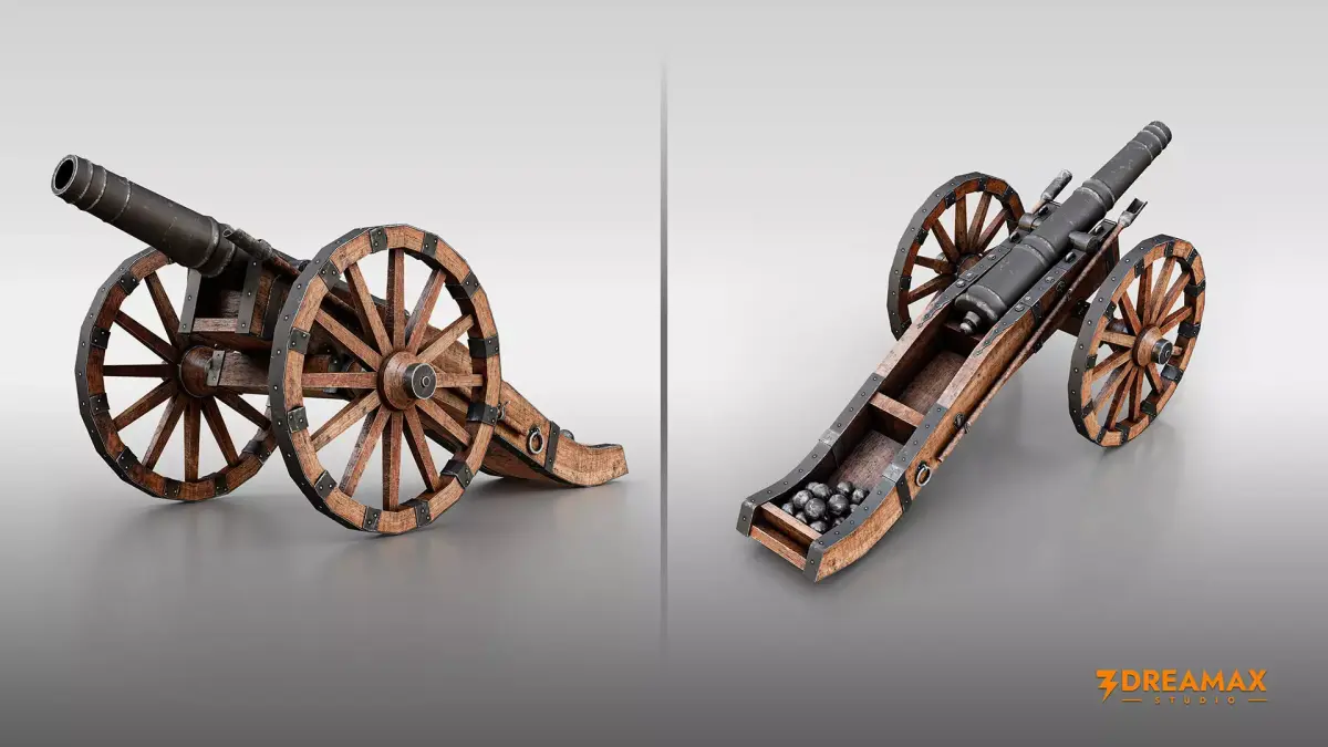 A precisely crafted medieval bombard/cannon with PBR materials and clean topology