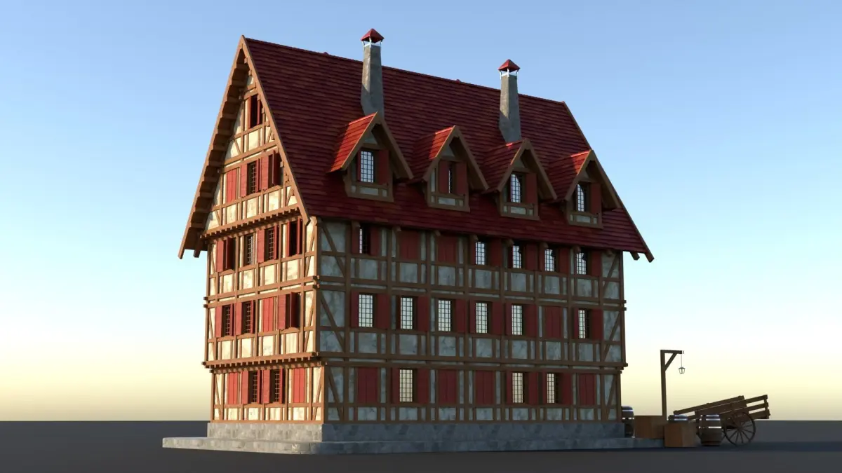 Medieval building with surroundings