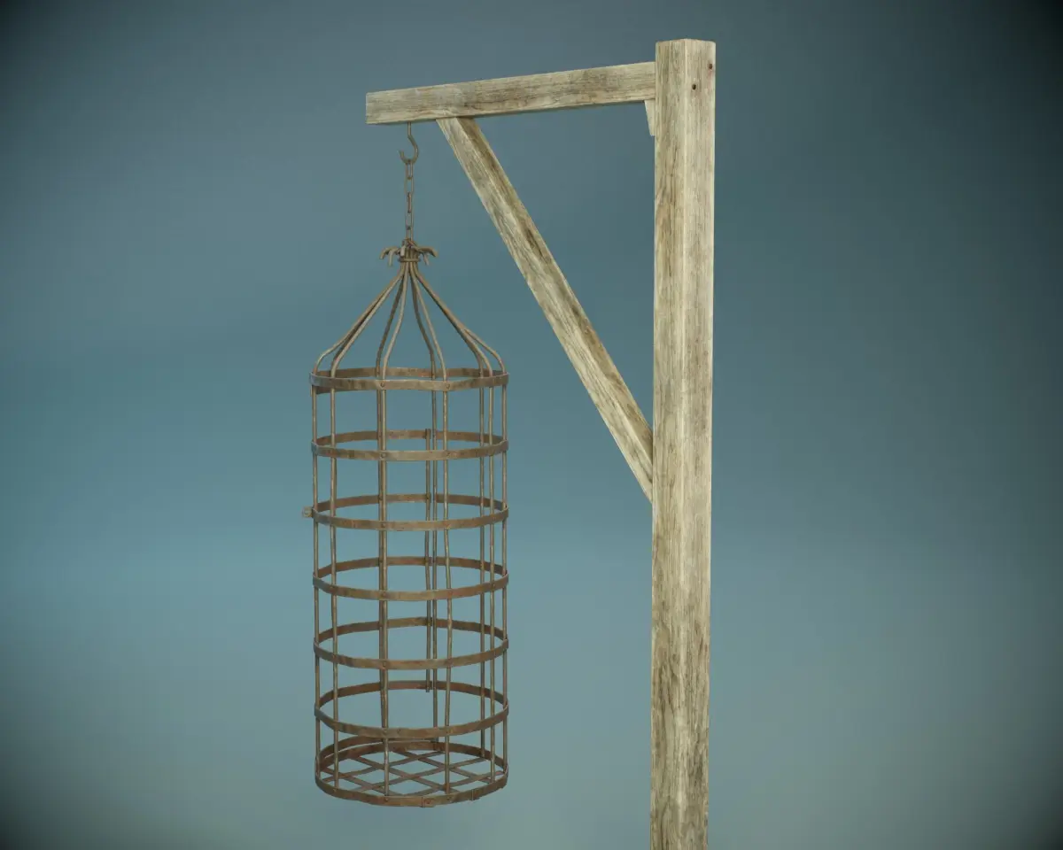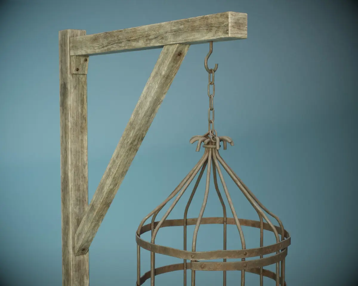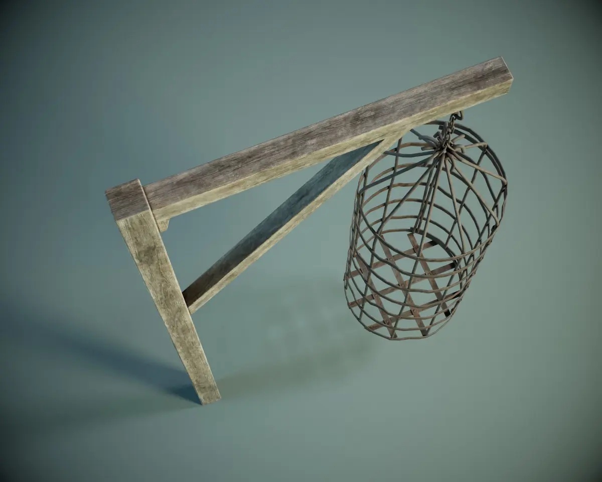 Low-poly PBR Medieval Cage model intended for game/realtime/background use.
