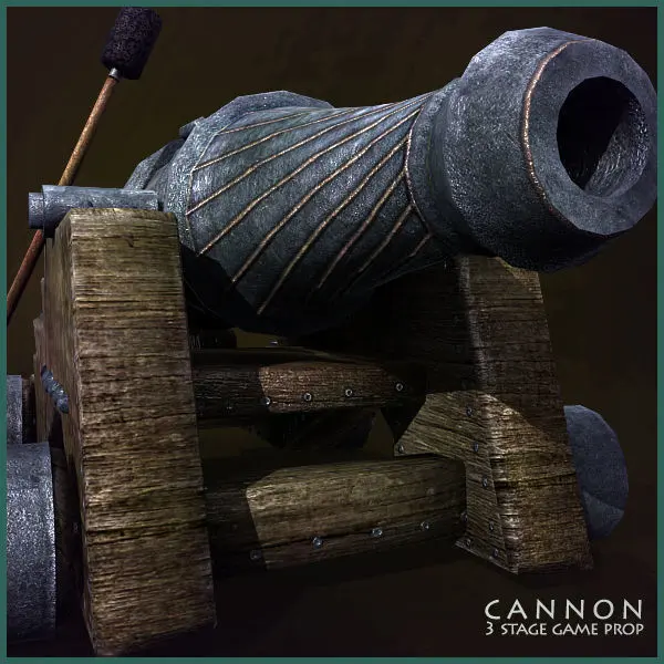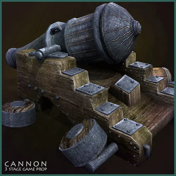 - Cannon damaged: 2,896 polygons, 3,005 vertexes, 5,236 triangles.
