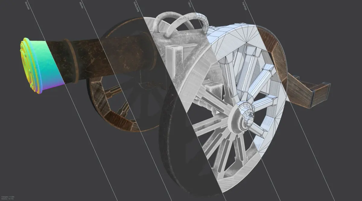 - Unreal engine: - BaseColor, -Normal, -ORM (Occlusion, Roughness, Metalic)