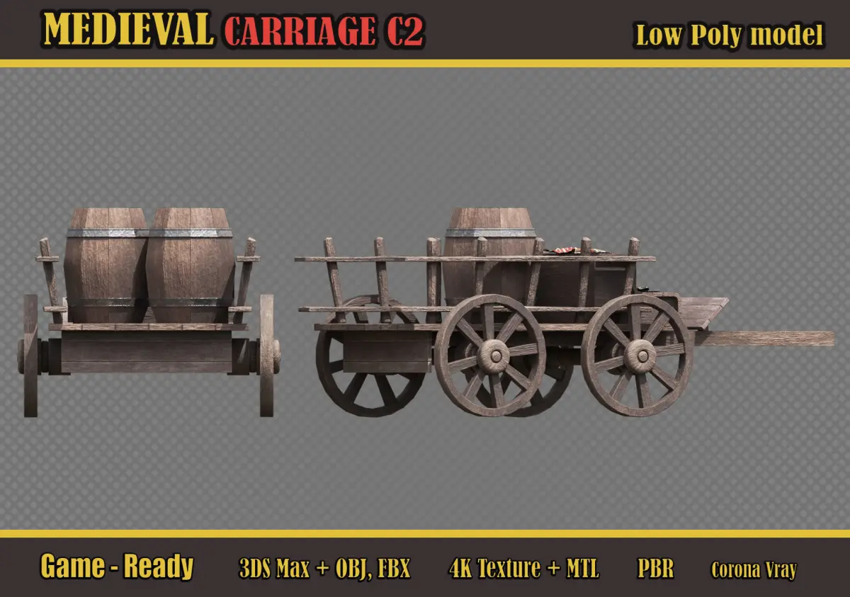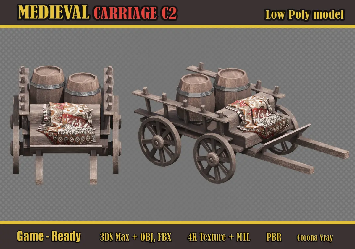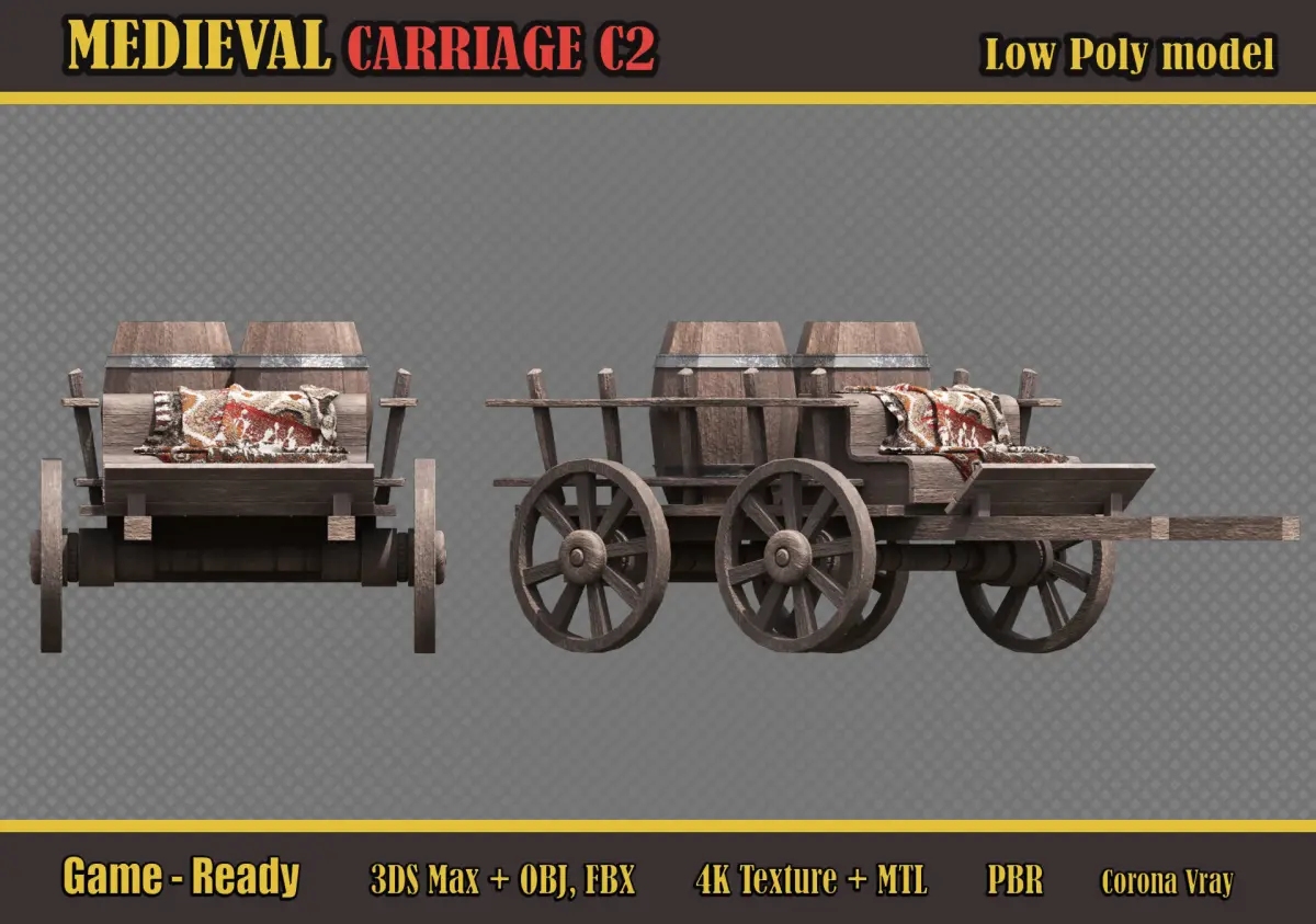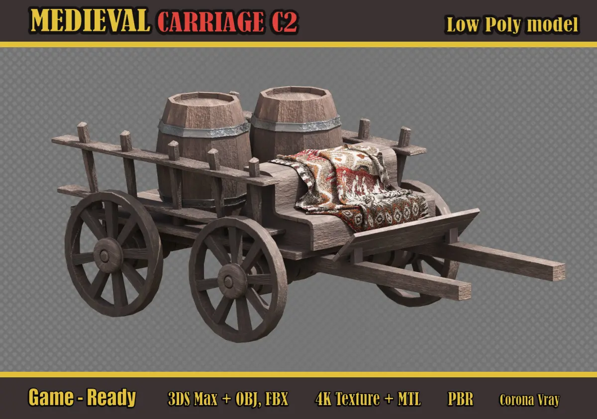 Medieval Carriage C2 Low-poly 3D model