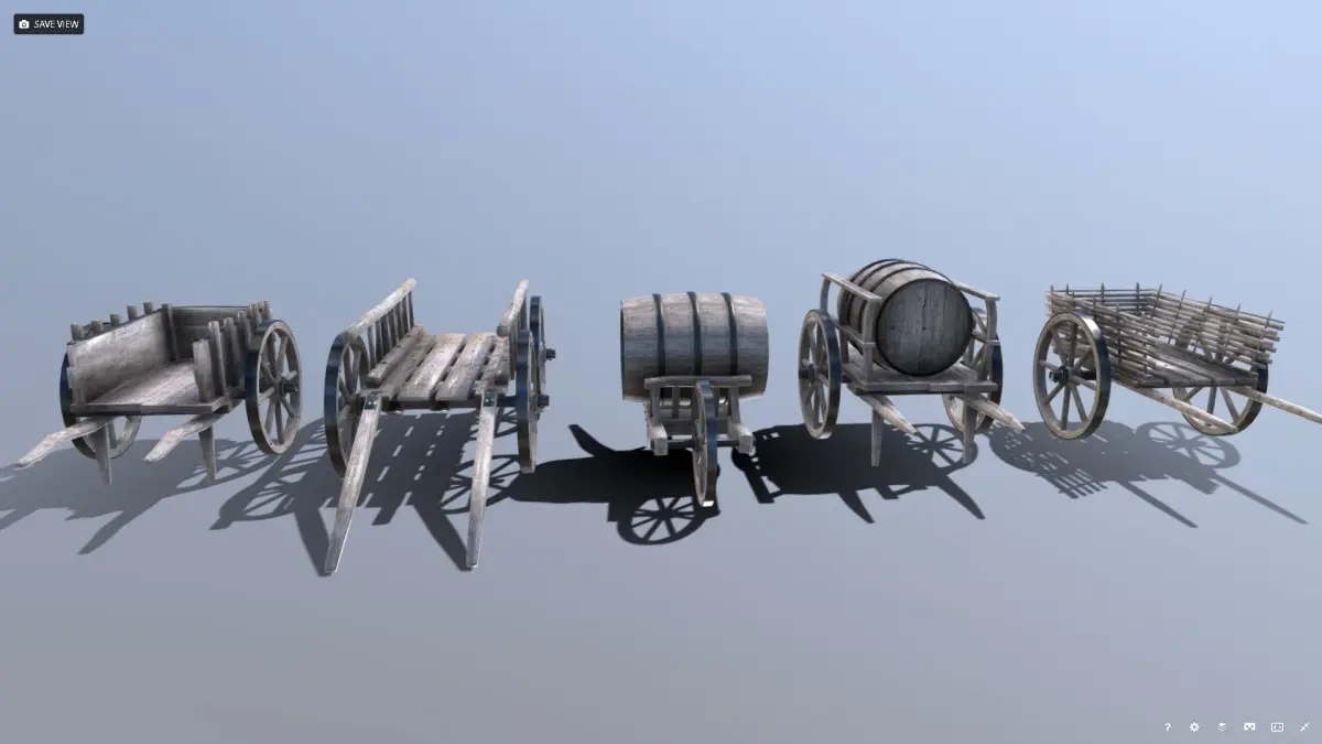 These are game-ready and low-poly models. All models are available as separates on this site. Search Medieval Carts to find them.