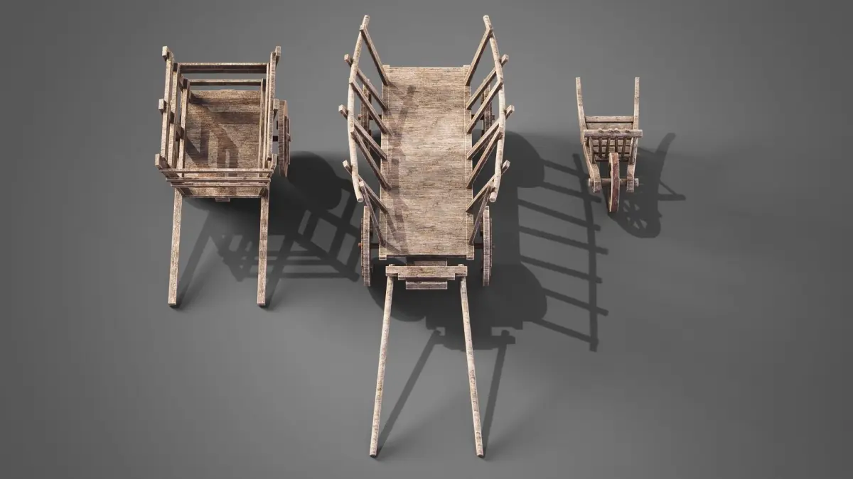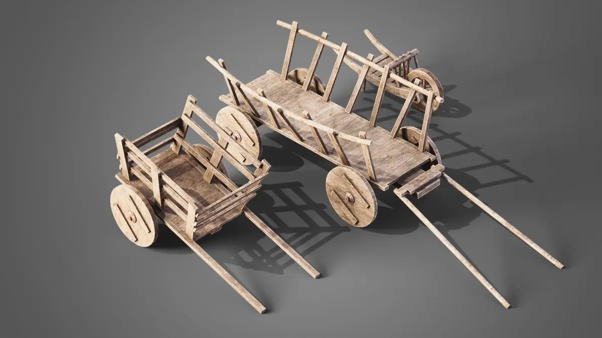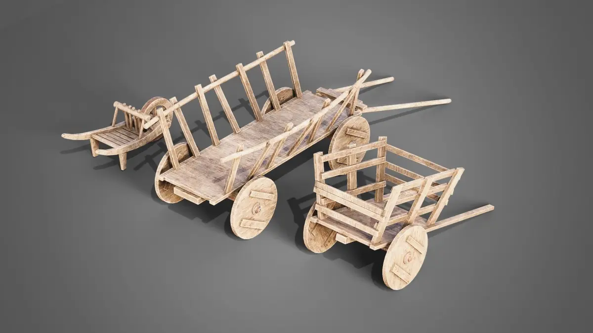 Medieval cart set modeled in Blender, textured with Substance Painter.