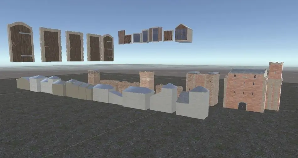 Medieval Castle with 2 different walls stairs for the one wall. 2 towers + the main one. 10 Basic Building Structures that can be combined with, the 7 different windows and 5 doors, the doors are made by separate parts so they can be modified, And the Keep With its own Door and 3 windows, And 2 Addons One For the Walls and one for the corners of the houses .Every Model is uv mapped the textures come in 1024*1024 size . Formats included Obj, 3ds, Fbx.