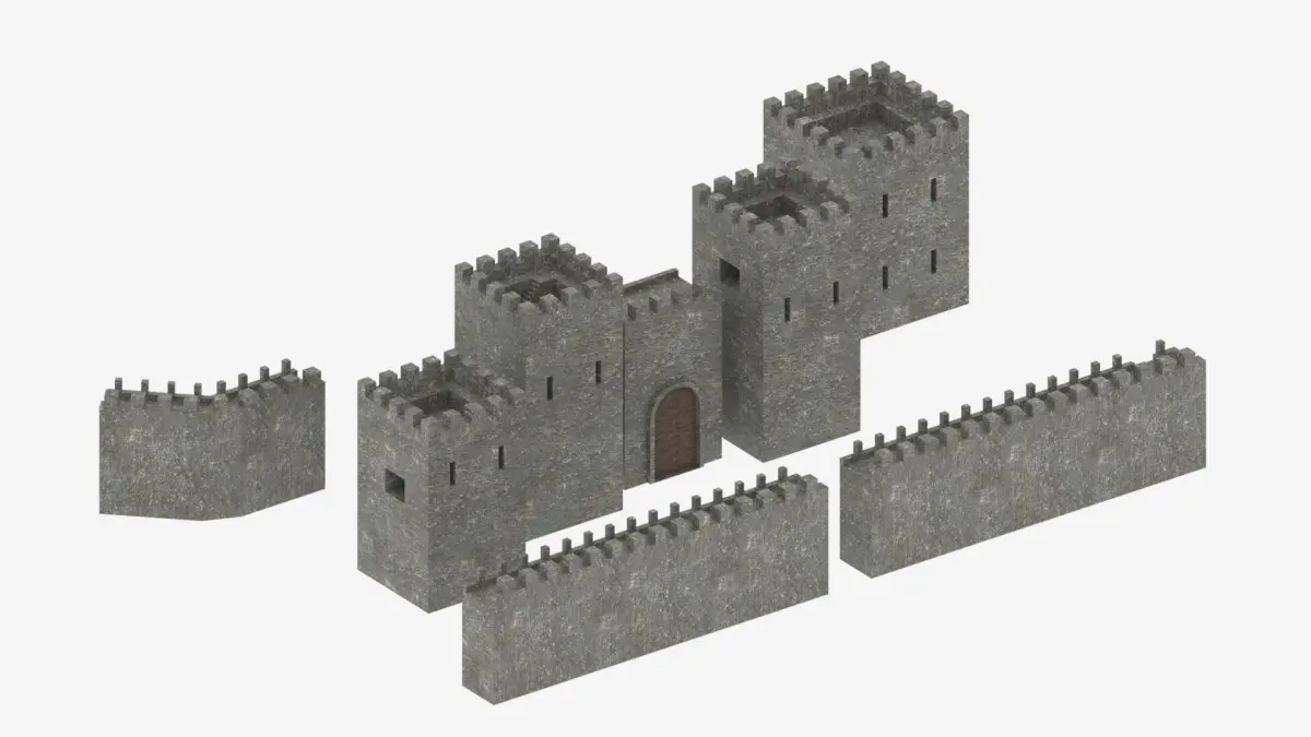 Castle_Wall. Castle_Wall_Corner, Castle_Wall_Stone_Steps, Coner_Tower, Gate_Tower, MIddle_Tower, Middle_Gate, Stone_Steps.