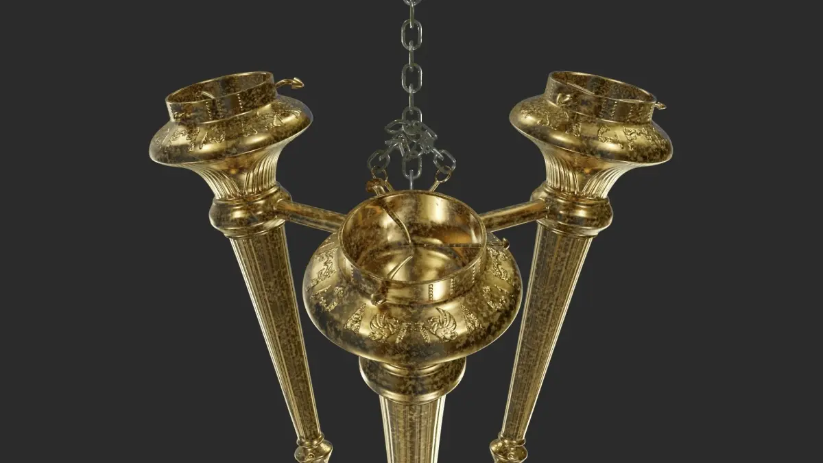 A realistic mid-poly medieval chandelier made with Blender 2.93. Included are Albedo, AO, Normal, Metallic, and Roughness map. Textures are in 2k and 4k png files. The model has nails for adding custom candle. The object in video was rendered in EEVEE with 1 lvl of subdivision.